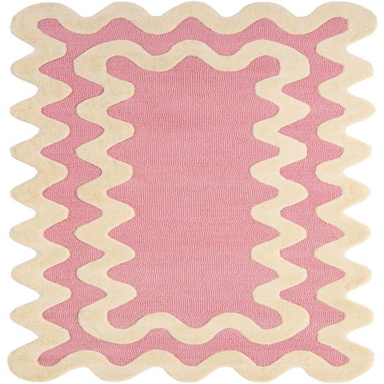 Primary color is Pink. Colors in this rug include: Pink, Ivory.