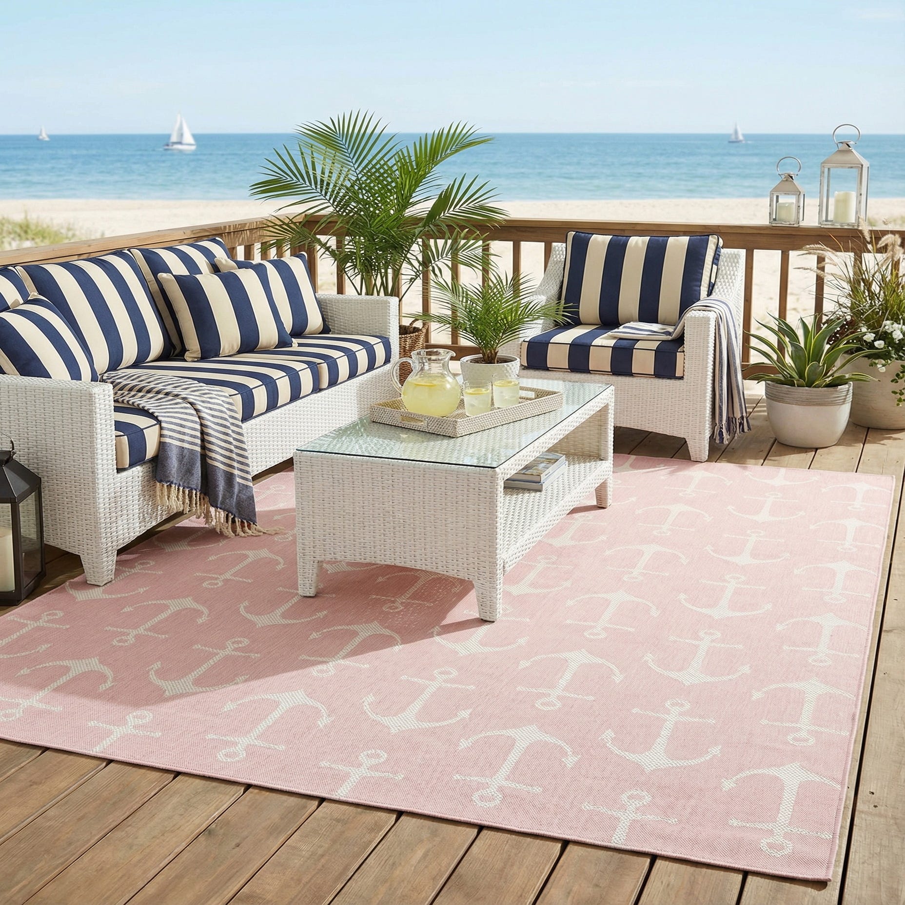 10' x 10' Washable Coastal Indoor / Outdoor Square Rug