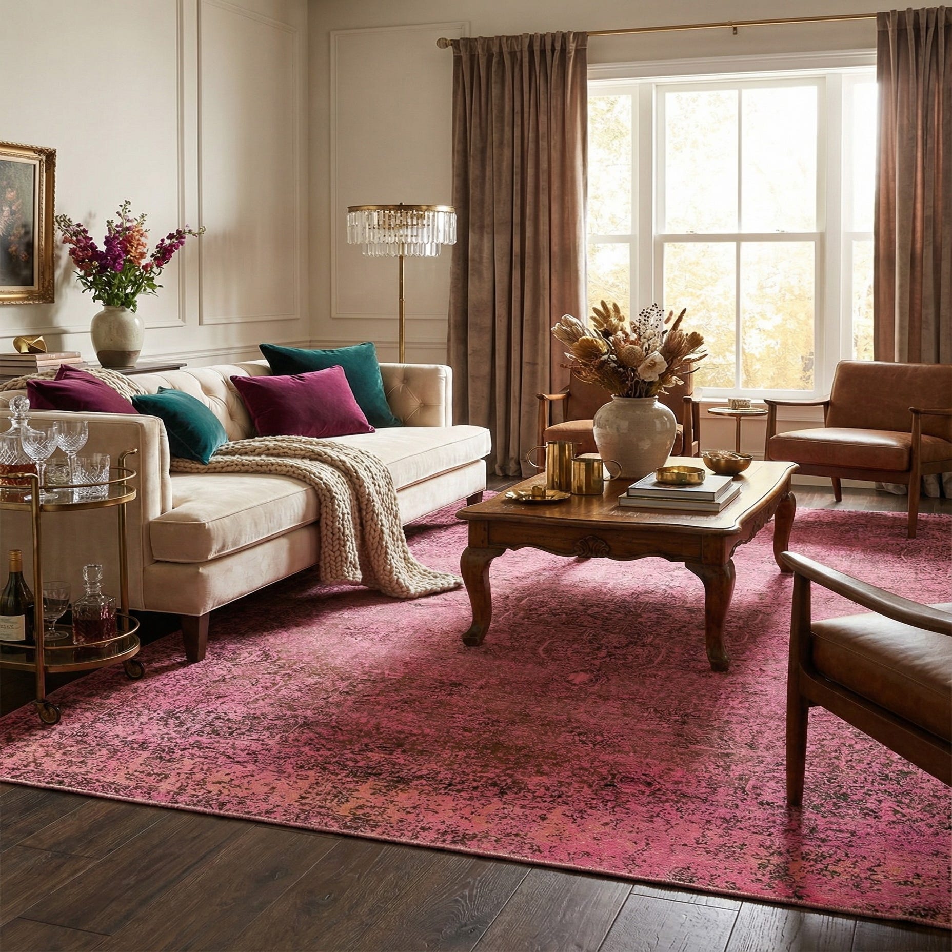 Primary color is pink. Colors in this rug include: pink, Pink.