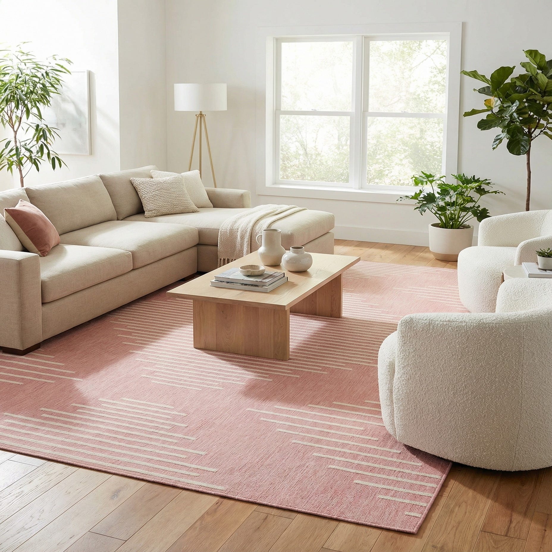 Primary color is Pink. Colors in this rug include: Pink, Ivory.