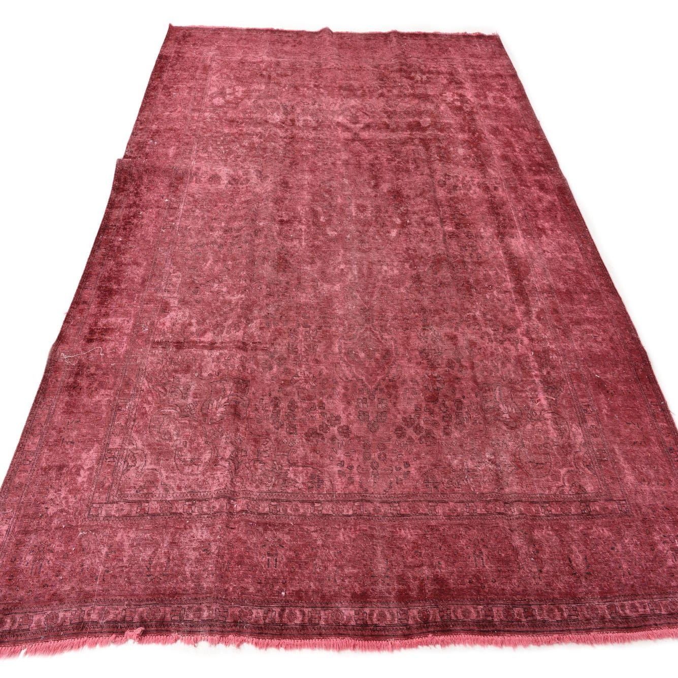 This Persian Ultra Vintage rug is an antique Persian Rug that has been washed, over-dyed, and then shaved down to a low pile. Look at the detail pictures to fully appreciate the uniqueness of this piece.