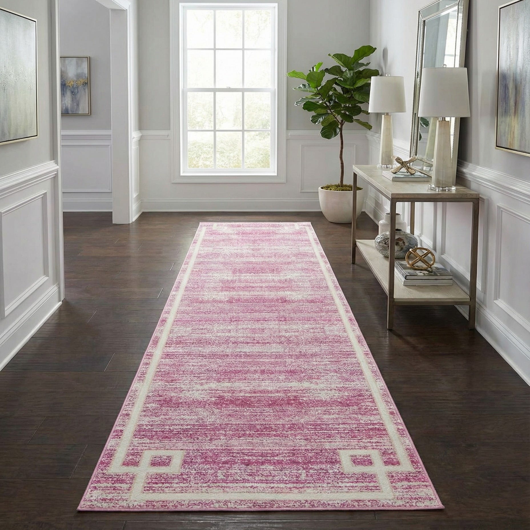 Primary color is Pink. Colors in this rug include: Pink, Beige, Ivory.
