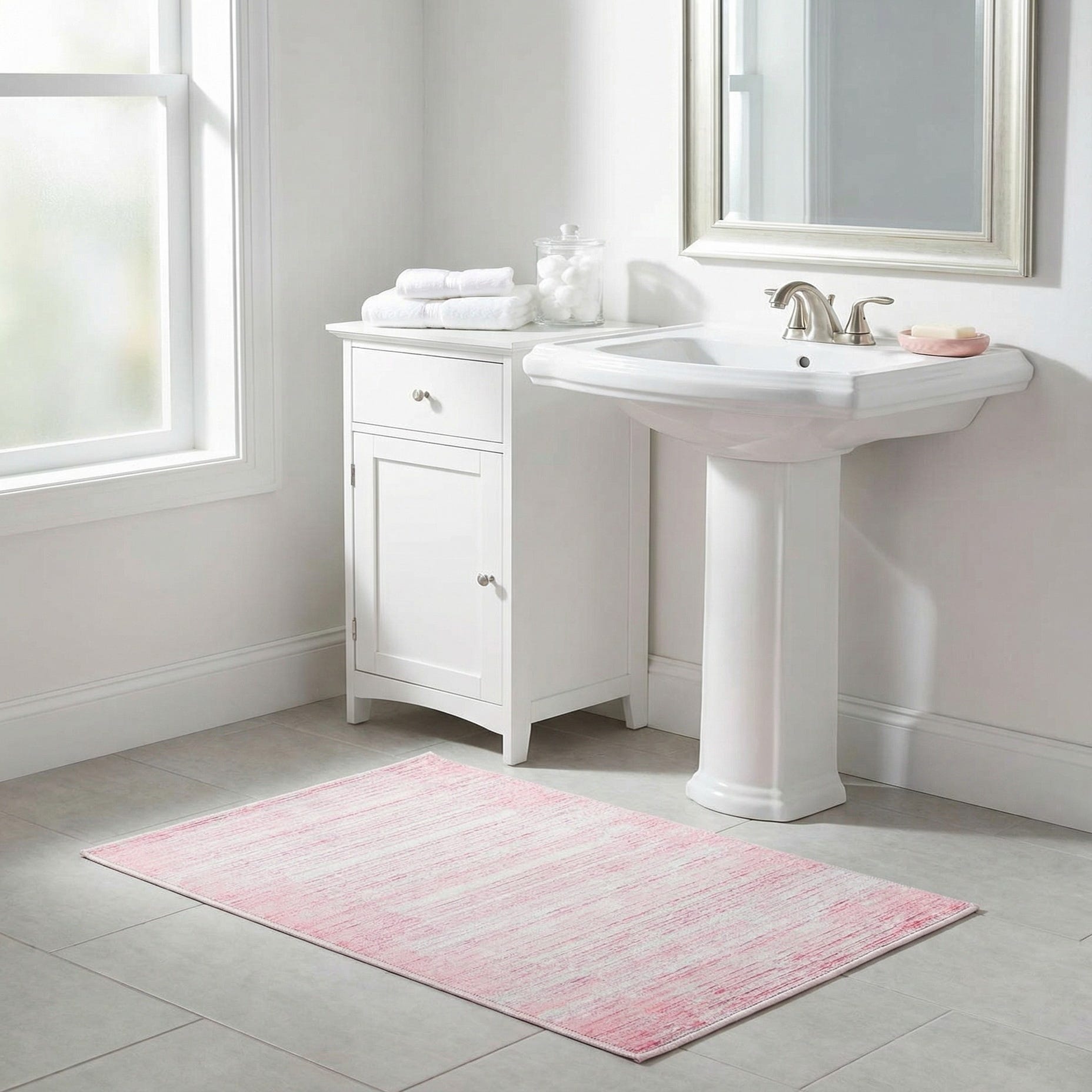 Primary color is Pink. Colors in this rug include: Pink, Ivory.