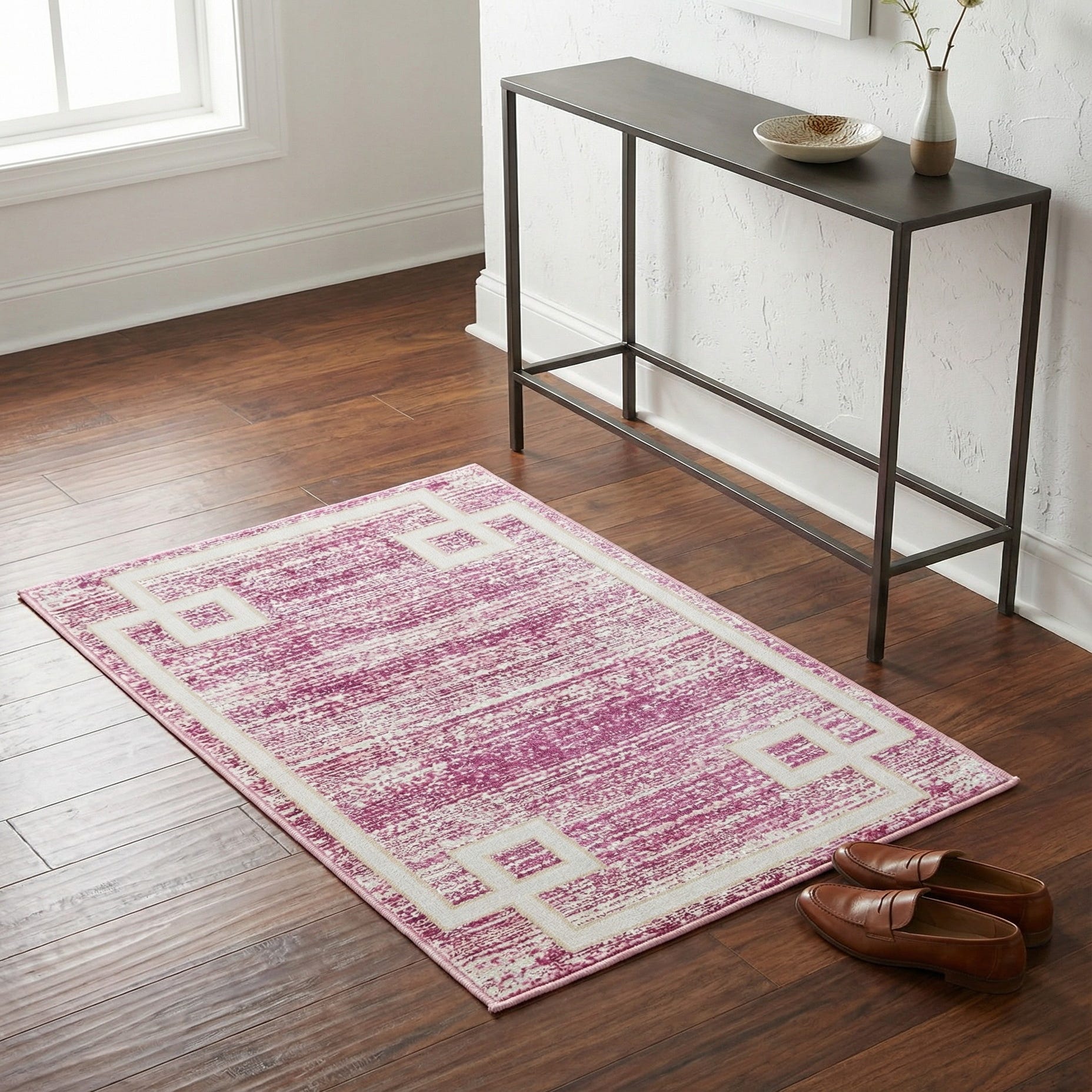 Primary color is Pink. Colors in this rug include: Pink, Beige, Ivory.