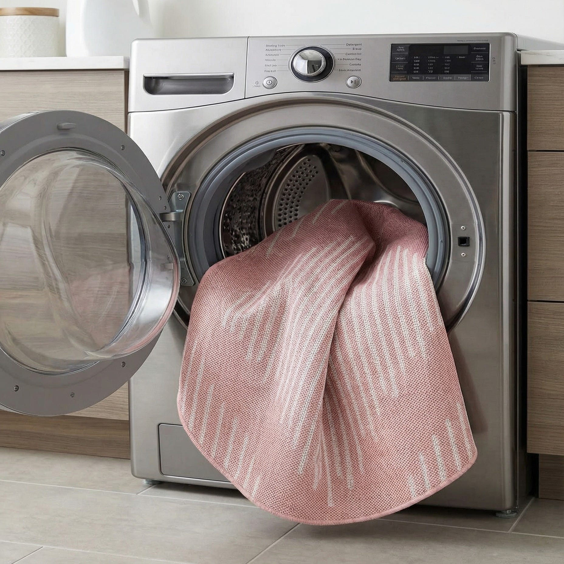 Primary color is Pink. Colors in this rug include: Pink, Ivory.