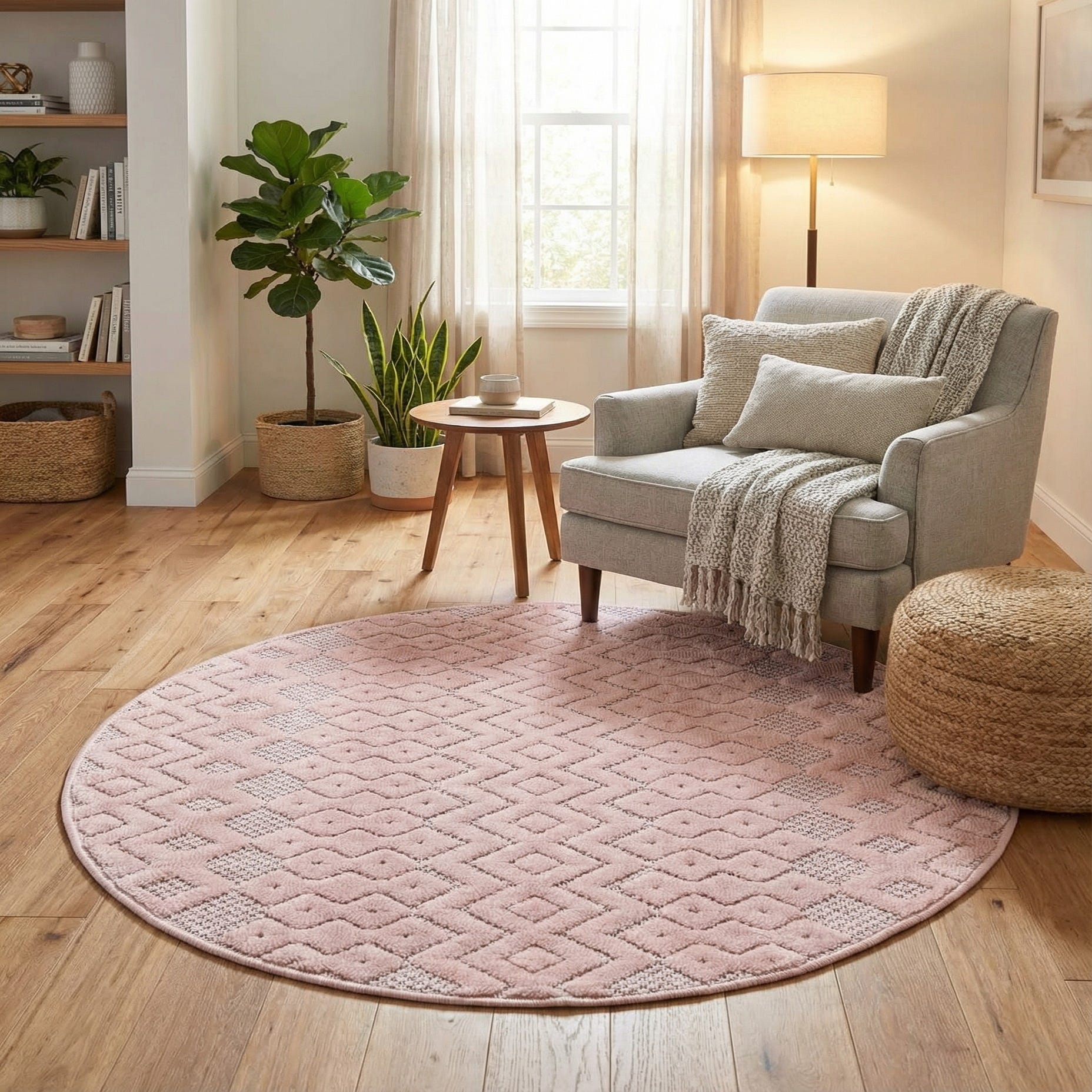 3' x 3' Washable Trellis Textured Indoor / Outdoor Round Rug