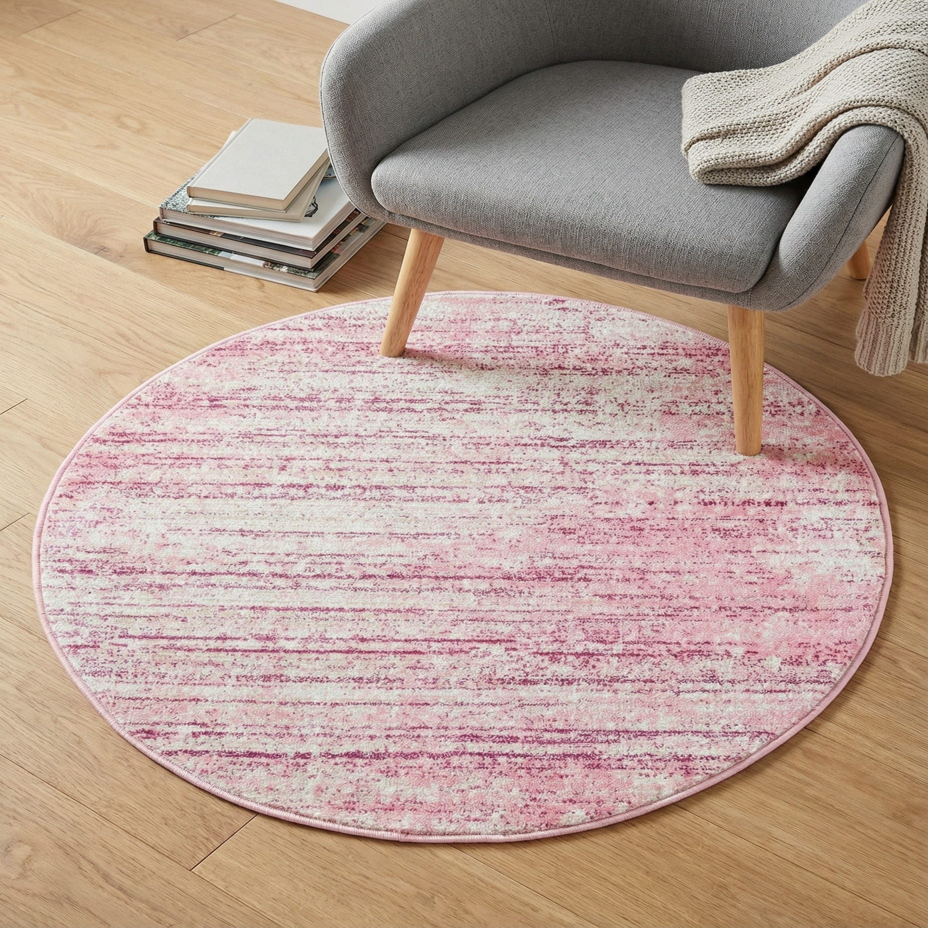 Primary color is Pink. Colors in this rug include: Pink, Ivory.