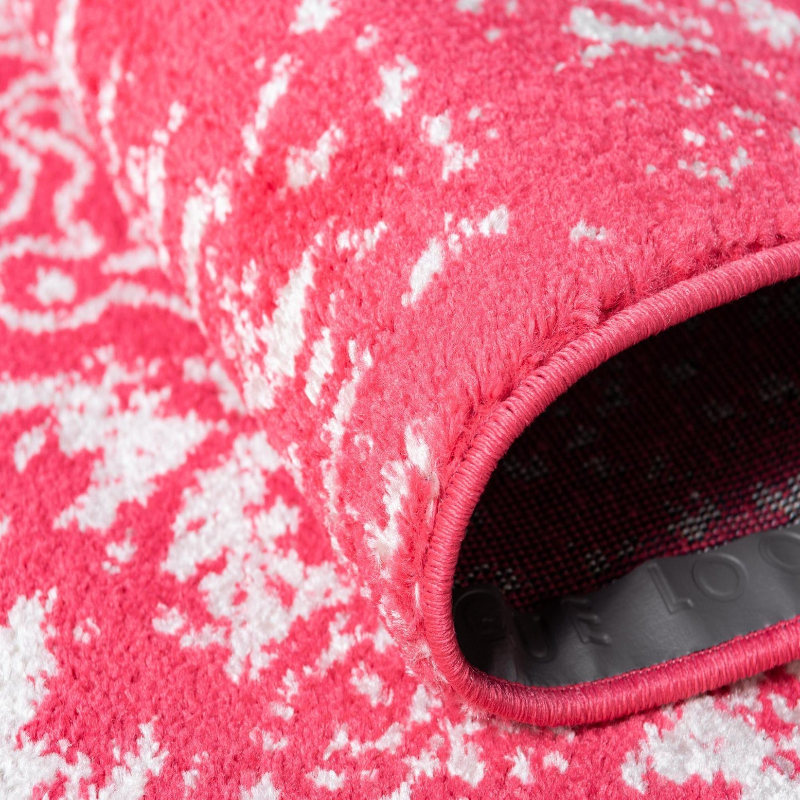 Primary color is Pink. Colors in this rug include: Pink, Ivory.