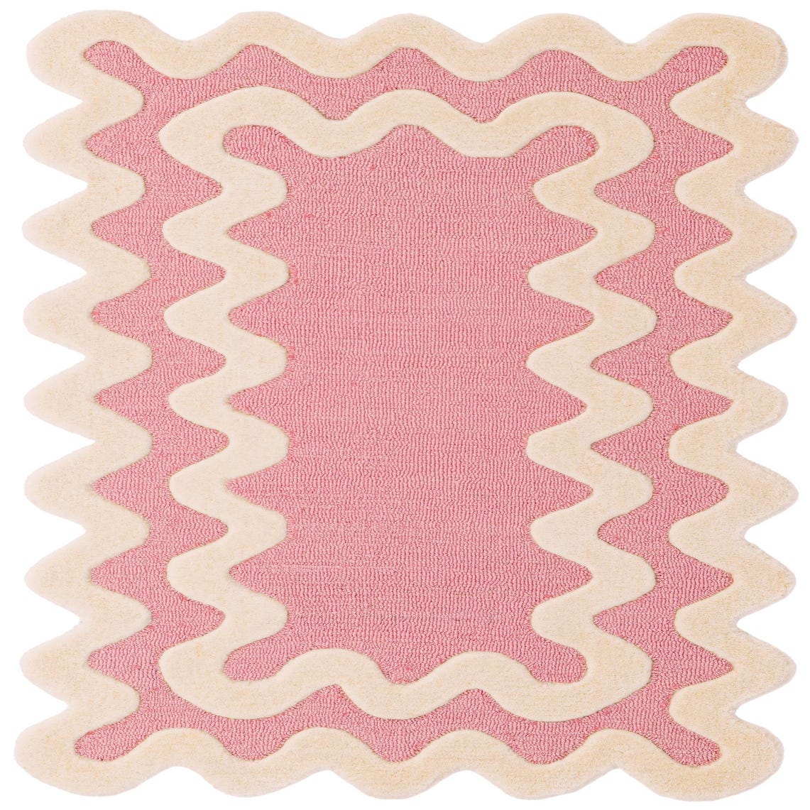 Primary color is Pink. Colors in this rug include: Pink, Ivory.