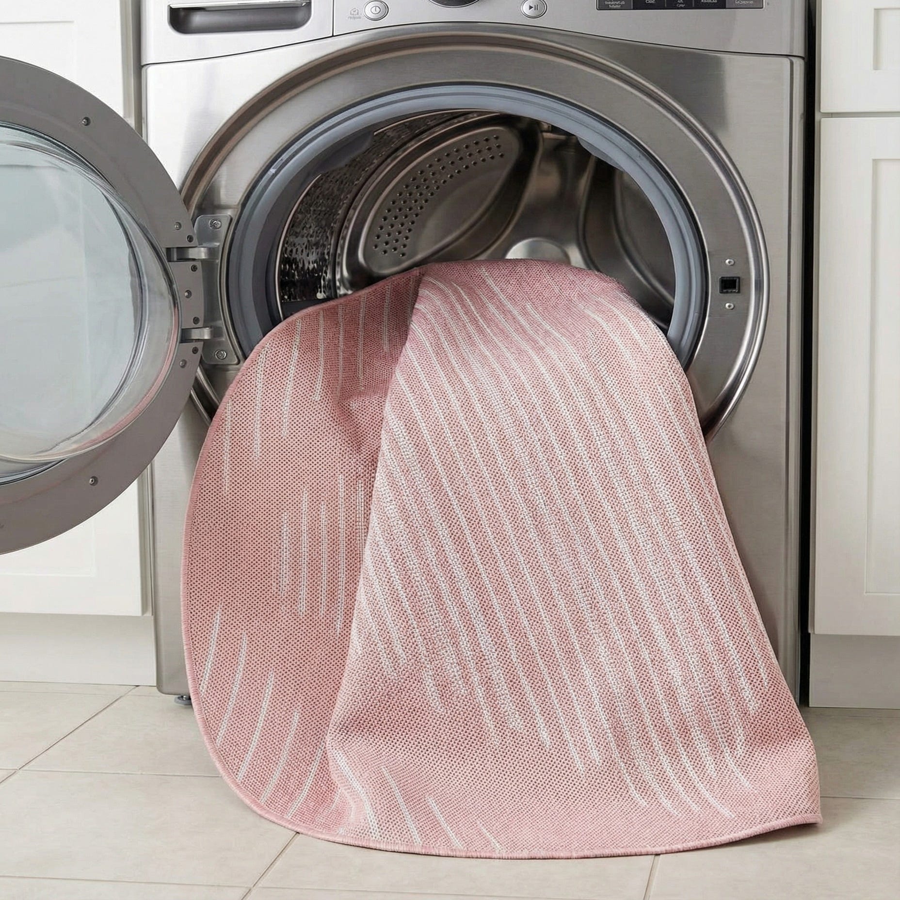 Primary color is Pink. Colors in this rug include: Pink, Ivory.