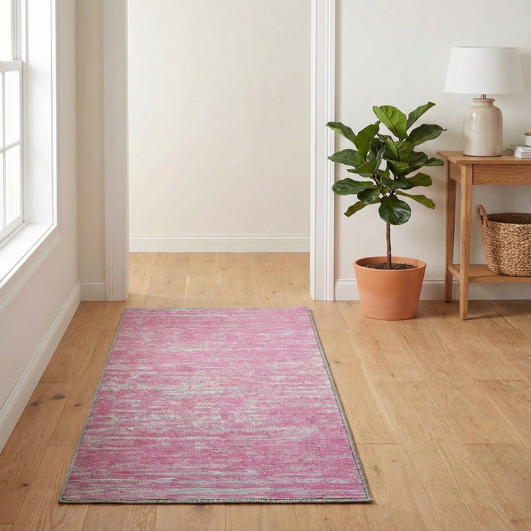 Primary color is Pink. Colors in this rug include: Pink, Ivory.