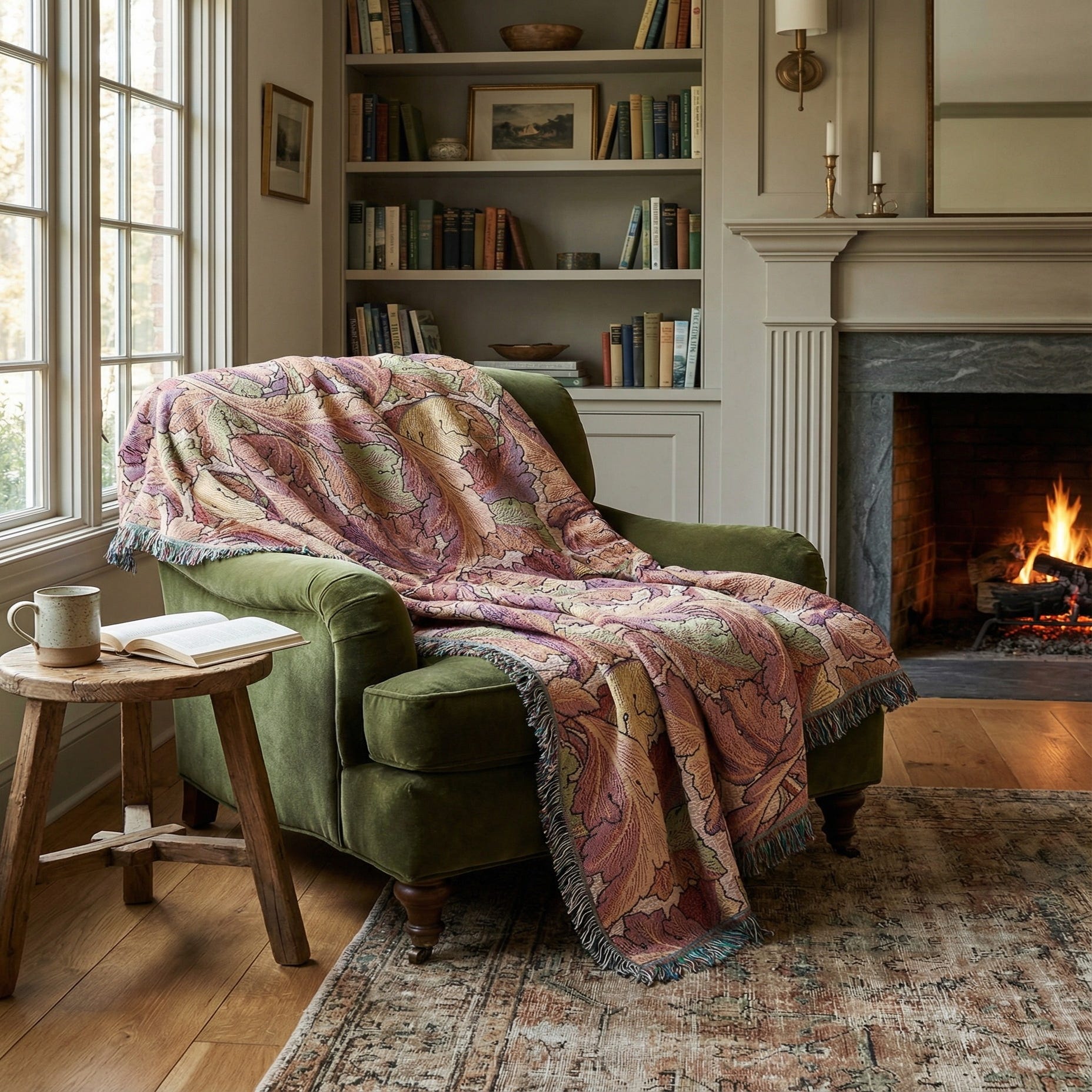 4' 6 x 6' William Morris Acanthus Leaves Sherbet Throw Blanket