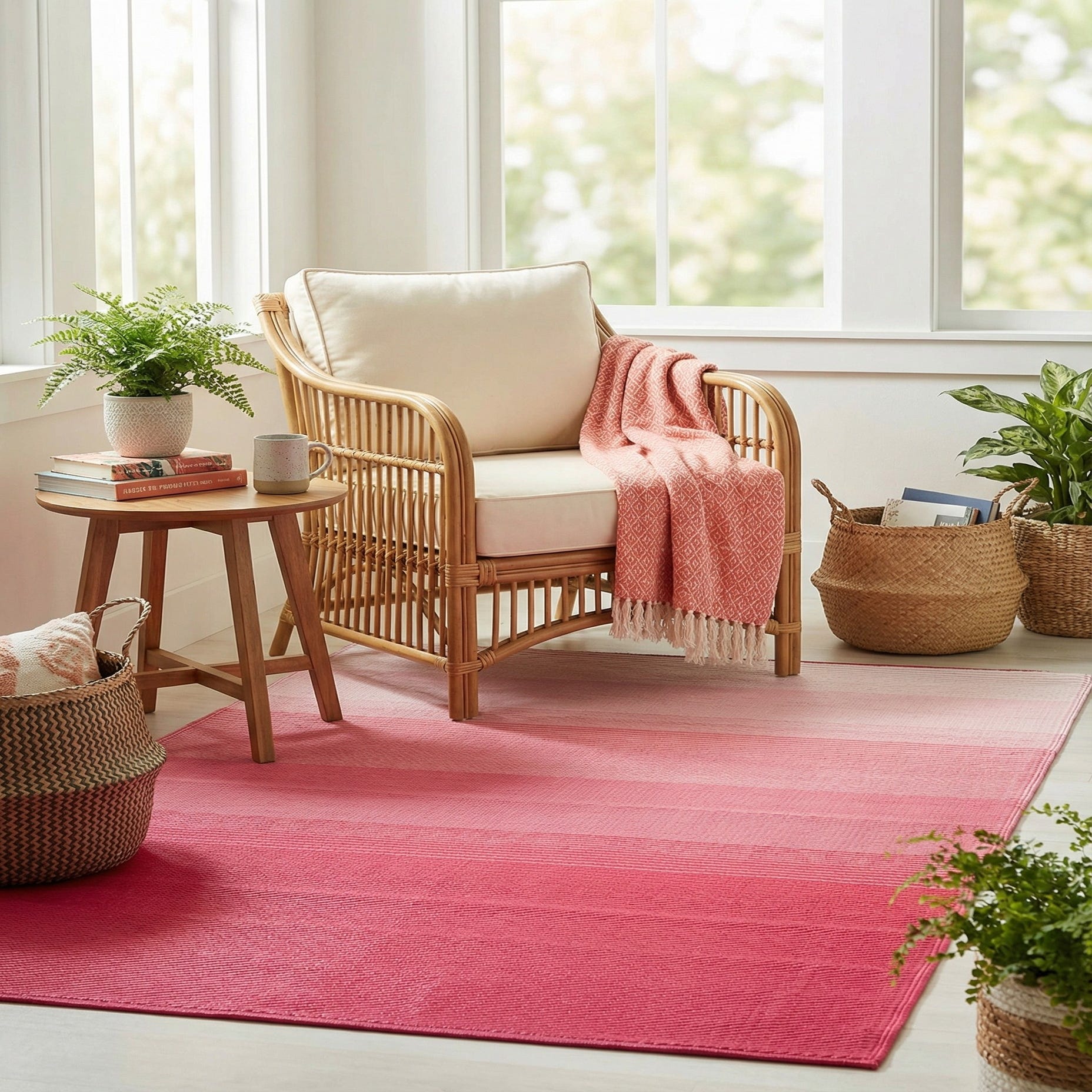 Primary color is Pink. Colors in this rug include: Pink, Ivory.