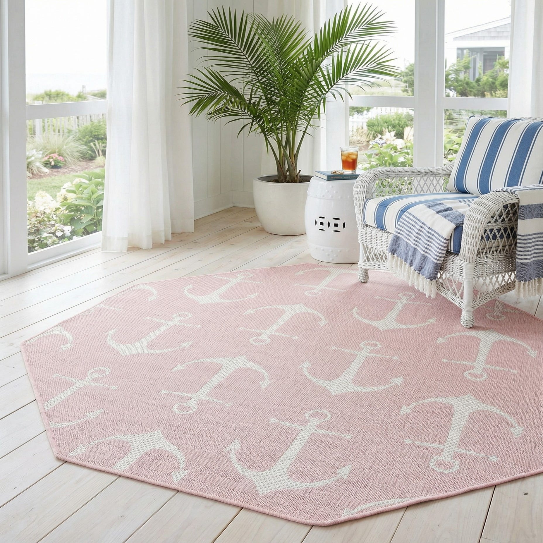 5' 3 x 5' 3 Washable Coastal Indoor / Outdoor Octagon Rug
