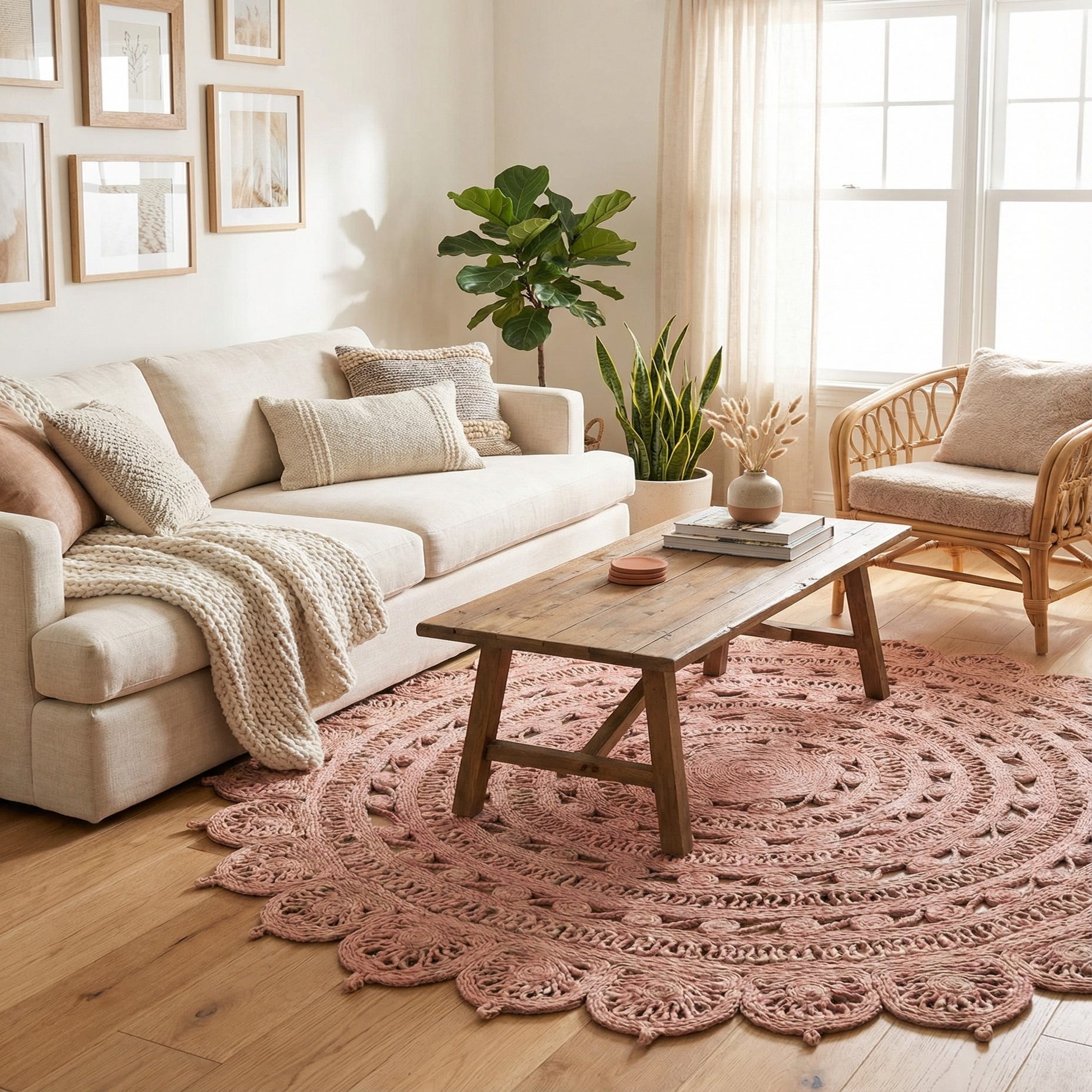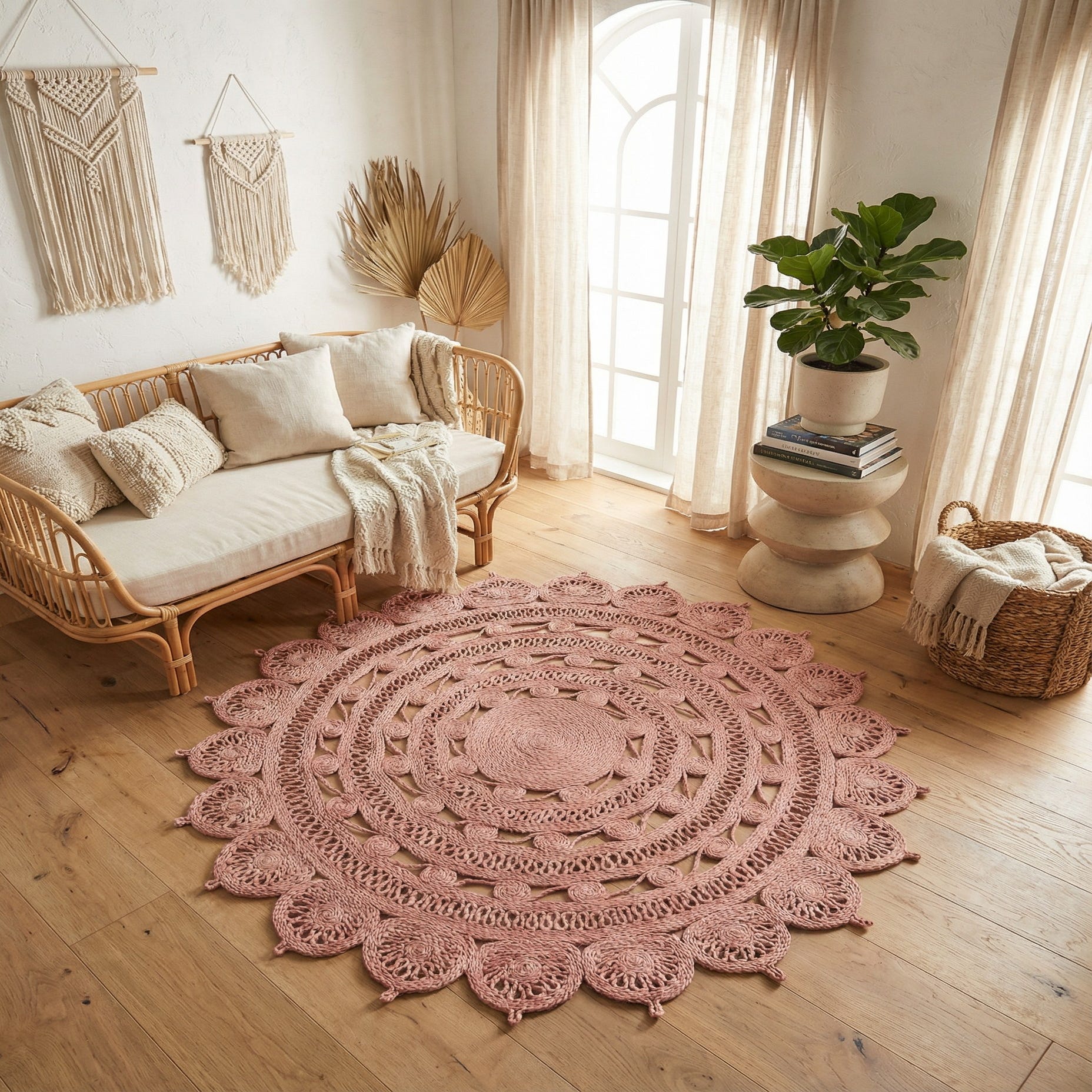 5' 1 x 5' 1 Hand Braided Jute Round Rug