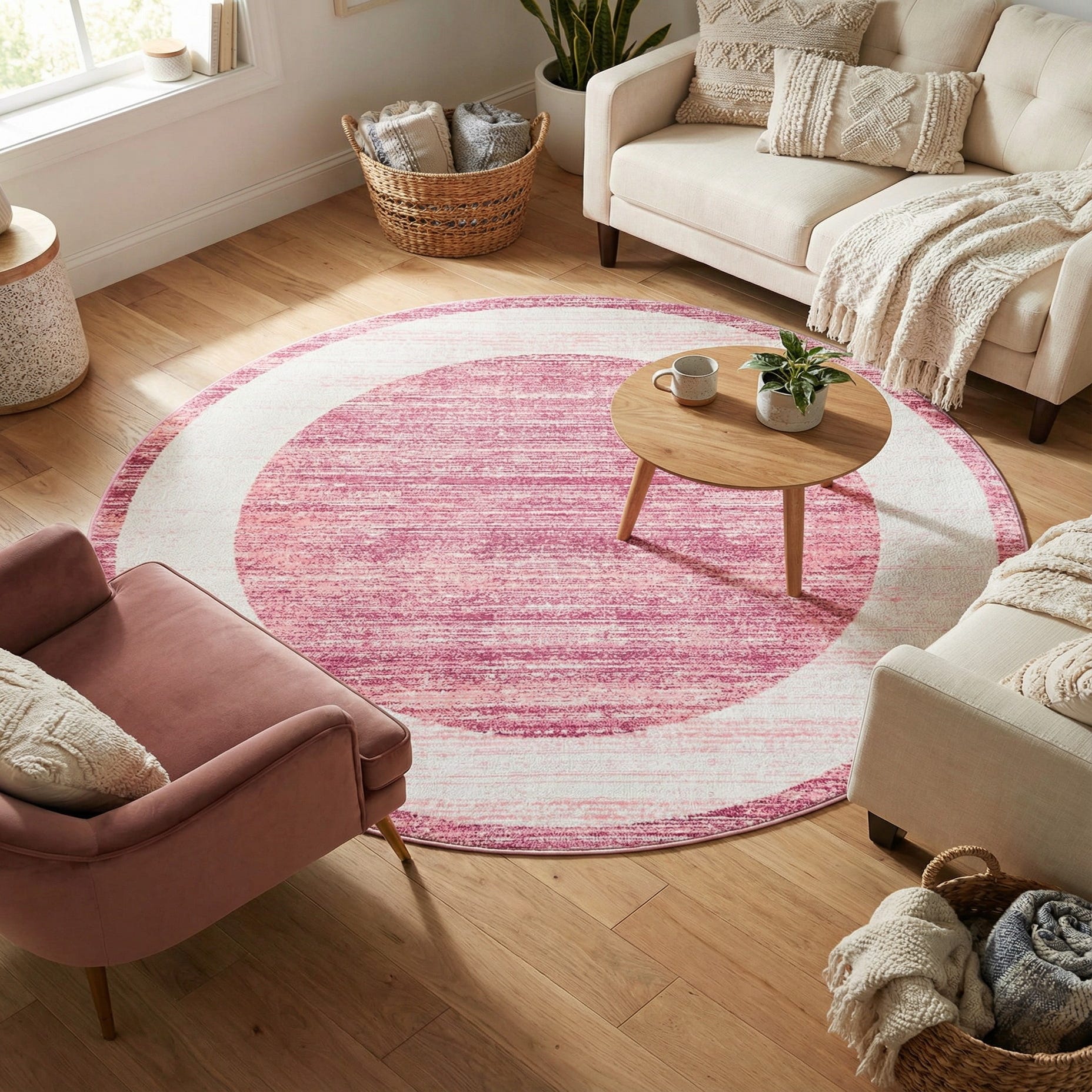 Primary color is Pink. Colors in this rug include: Pink, Ivory.