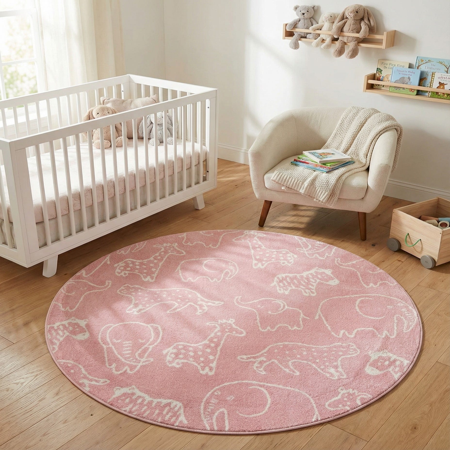 Primary image 5' 3 x 5' 3 Animals Whimsy Kids Round Rug