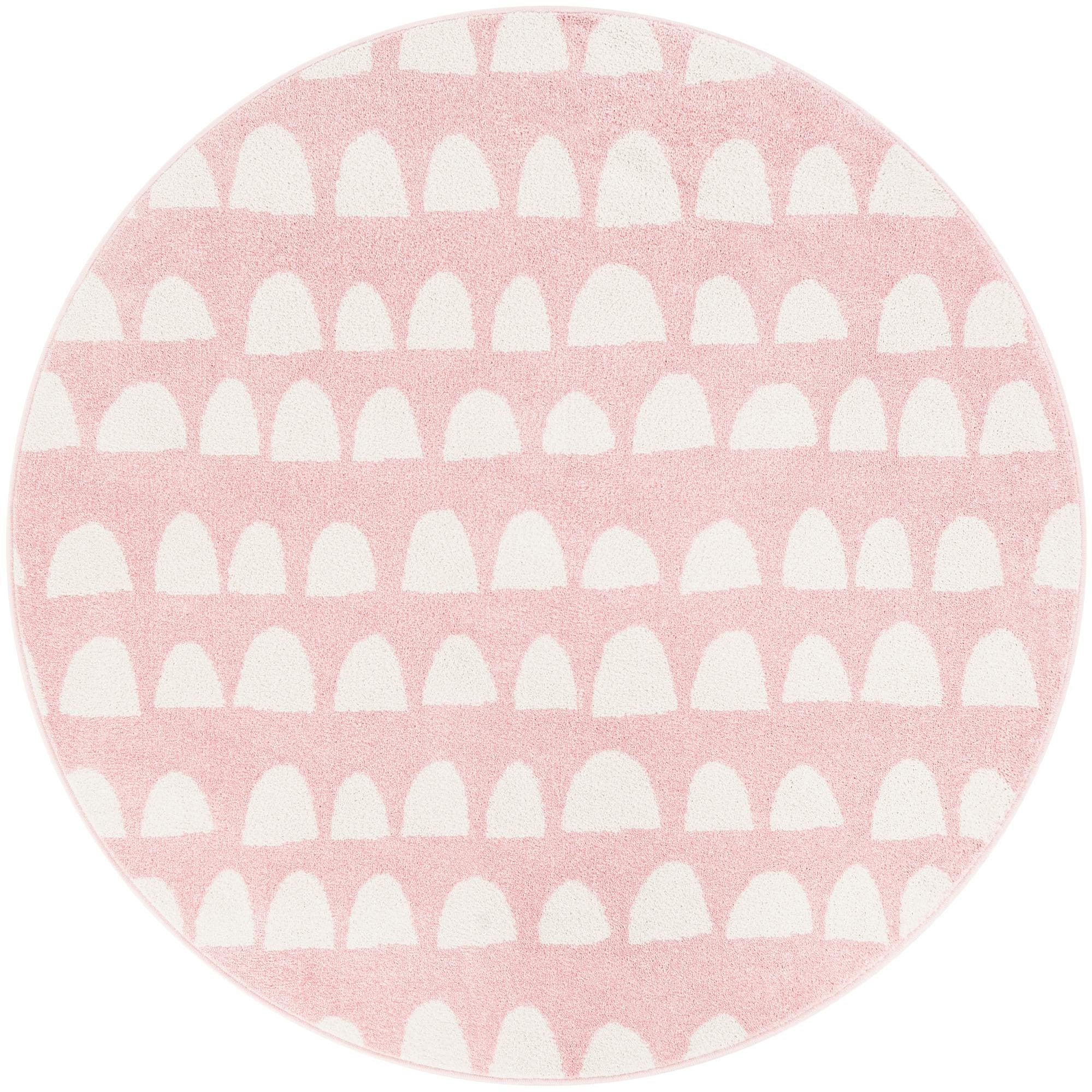Primary color is Pink. Colors in this rug include: Pink, Ivory.