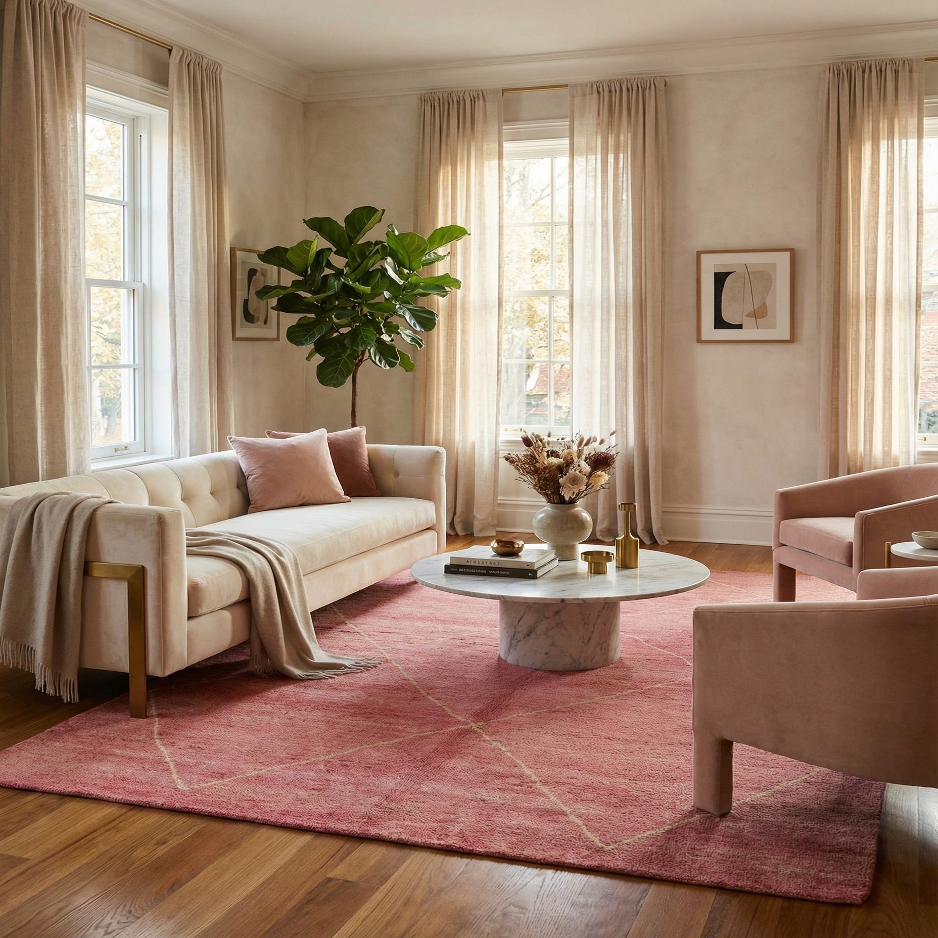 Primary color is Pink. Colors in this rug include: Pink, Ivory.