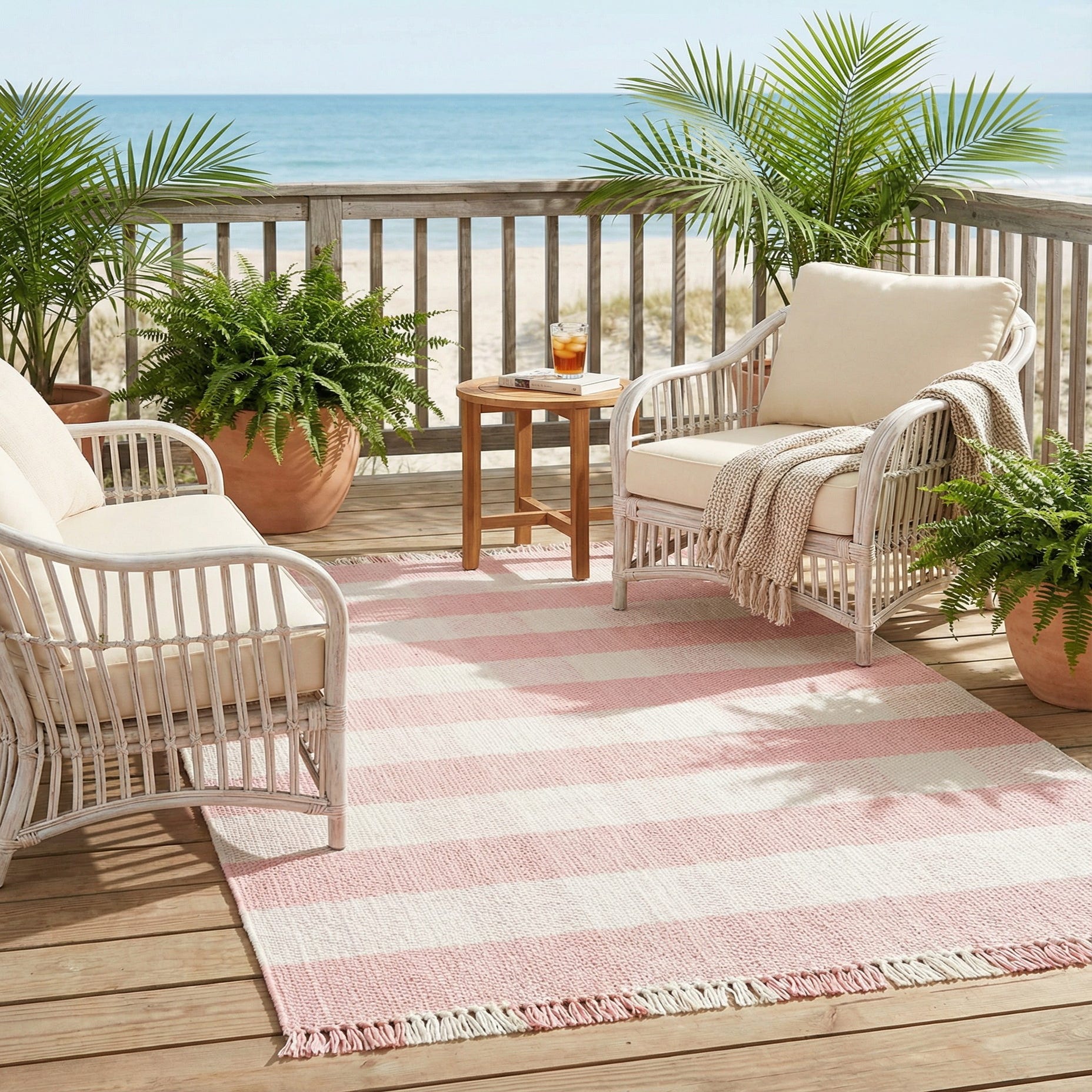 Primary color is Pink. Colors in this rug include: Pink, Ivory.