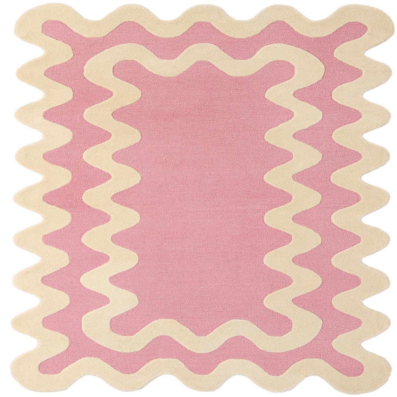 Primary color is Pink. Colors in this rug include: Pink, Ivory.
