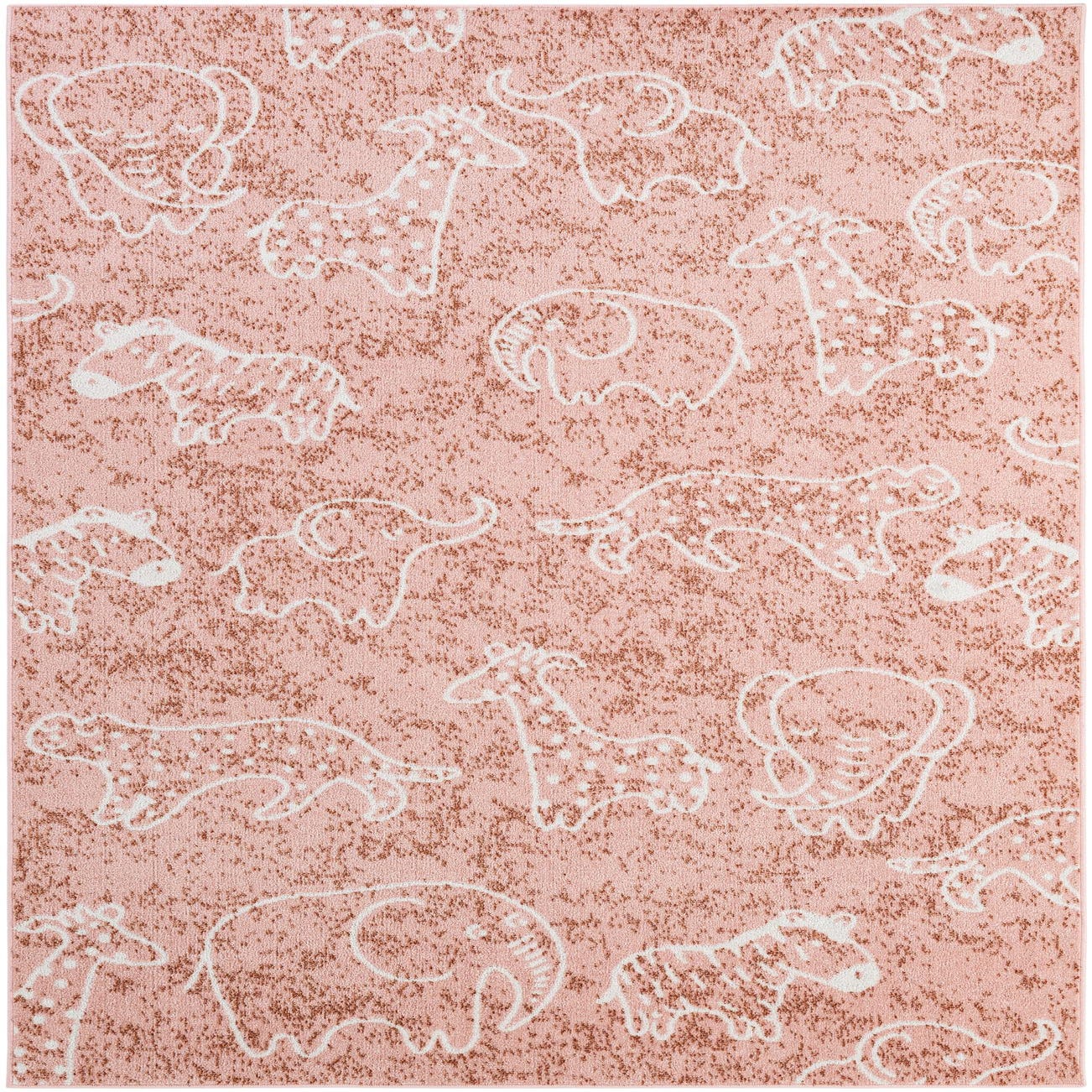 Primary color is Pink. Colors in this rug include: Pink, Ivory, Red.