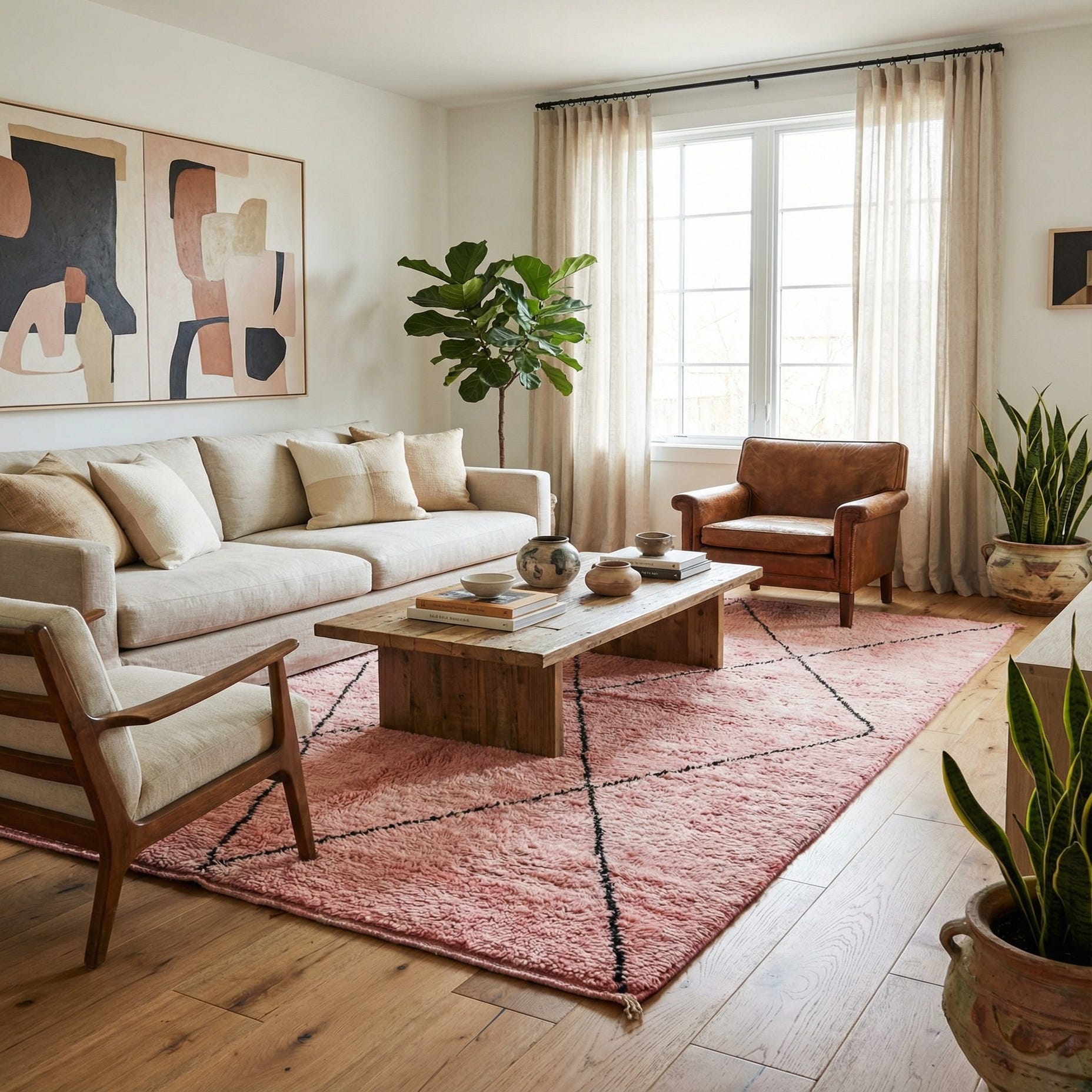 Primary color is Pink. Colors in this rug include: Pink, Black, Ivory.