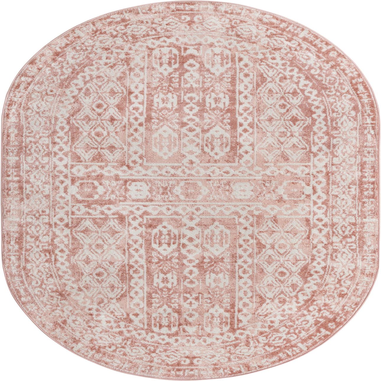 Primary color is Pink. Colors in this rug include: Pink, Ivory.