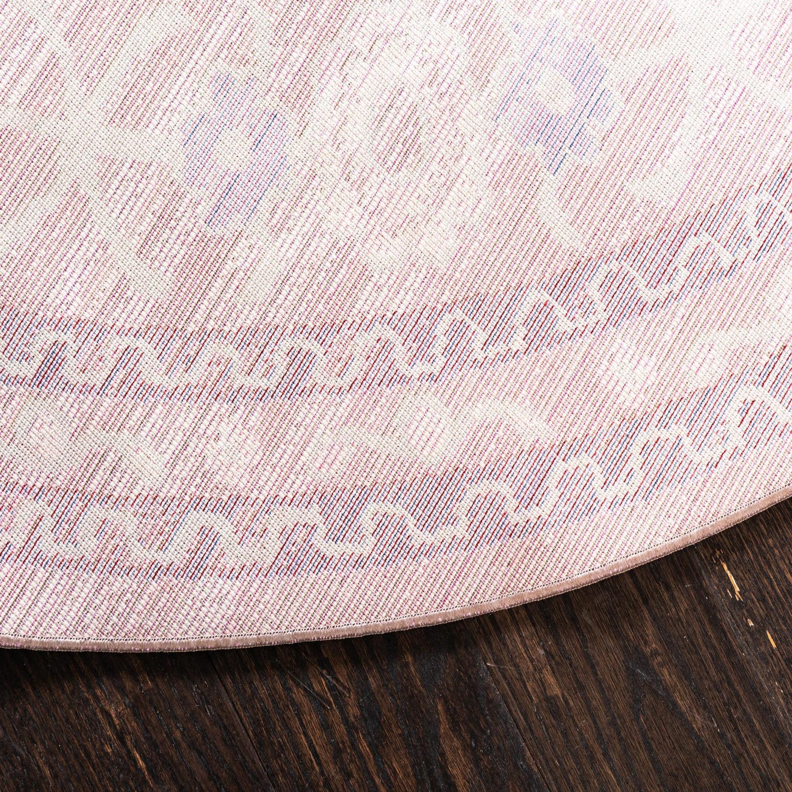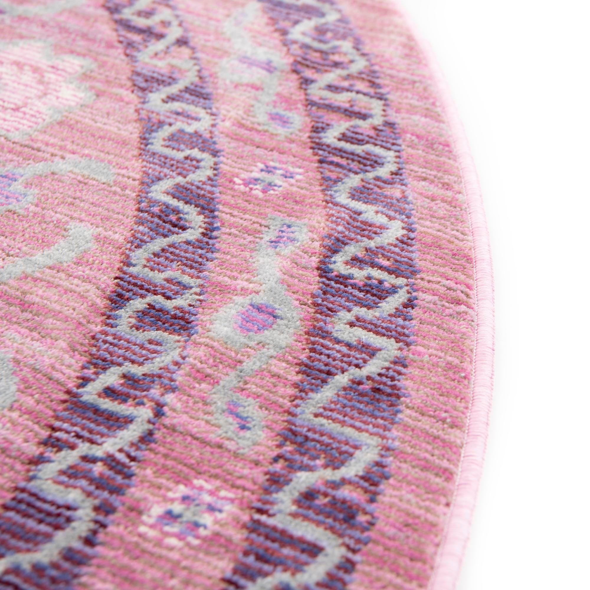 Primary color is Pink. Colors in this rug include: Pink, Beige, Gray, Maroon, Purple.