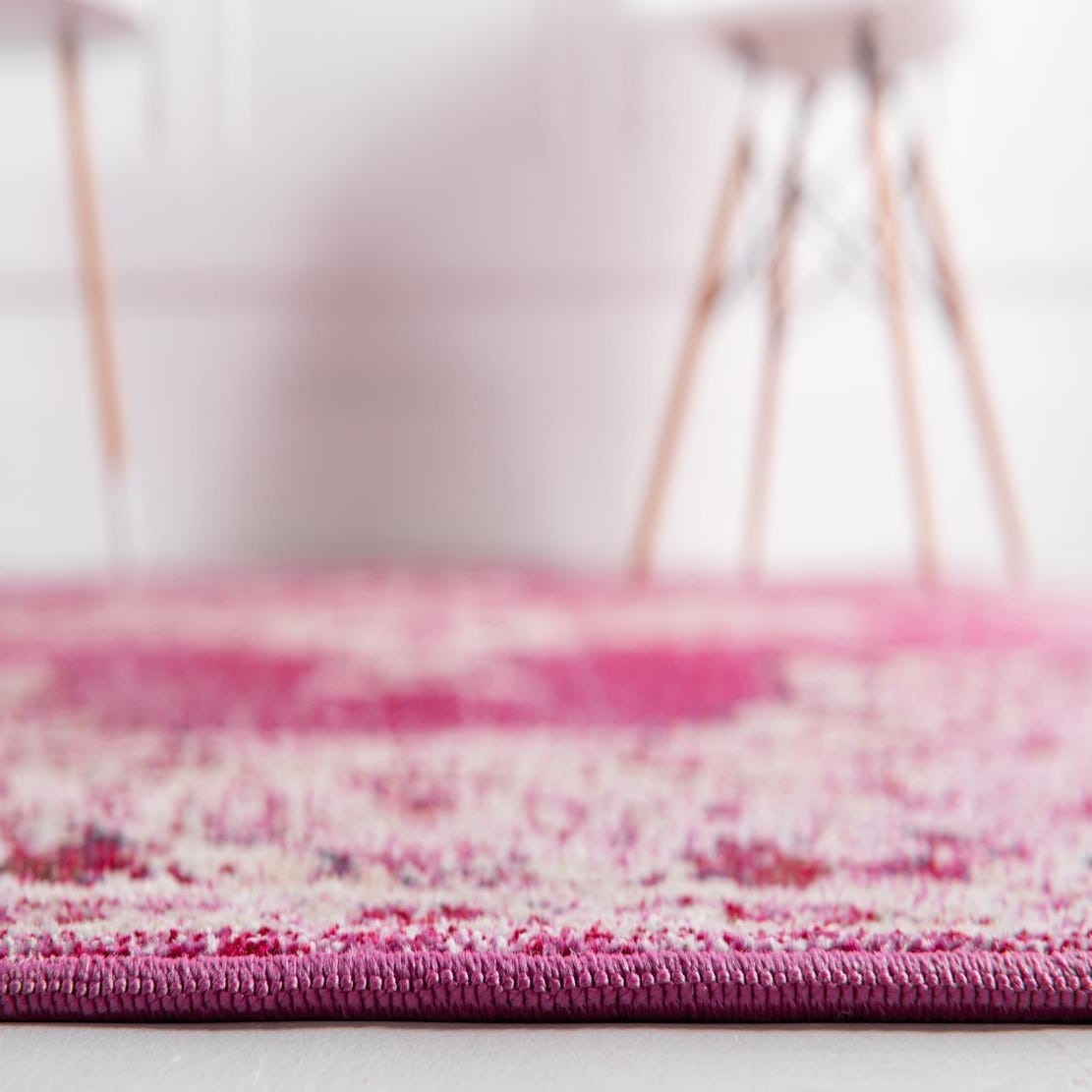 Primary color is Pink. Colors in this rug include: Pink, Beige, Ivory, Purple, Red.