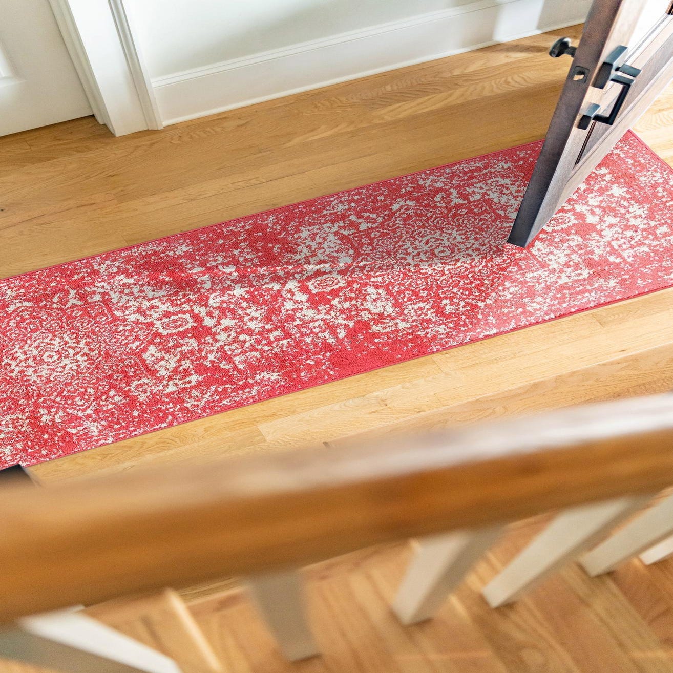 Primary color is Pink. Colors in this rug include: Pink, Ivory.