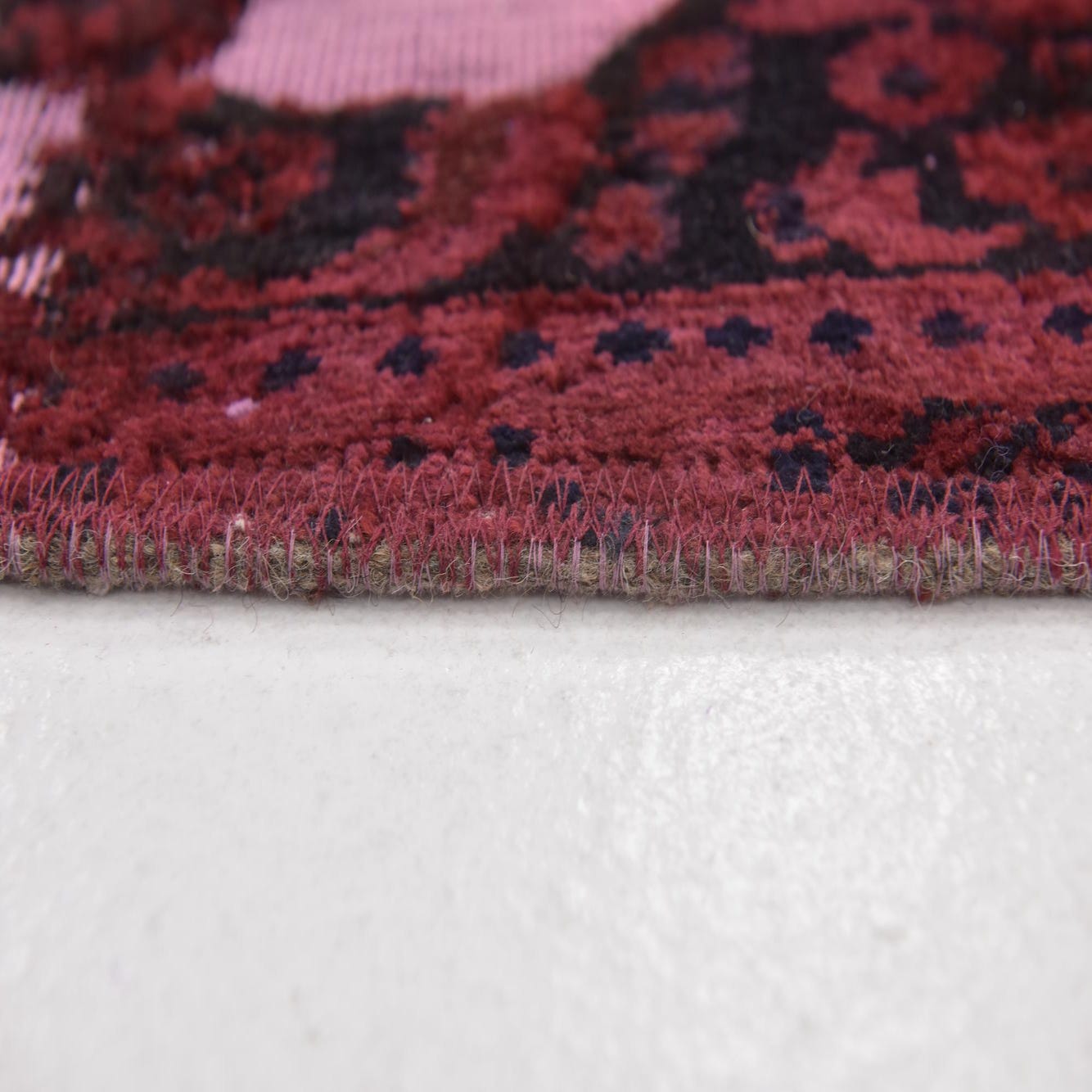 Primary color is Pink. Colors in this rug include: Pink, Burgundy, Navy Blue, Red.