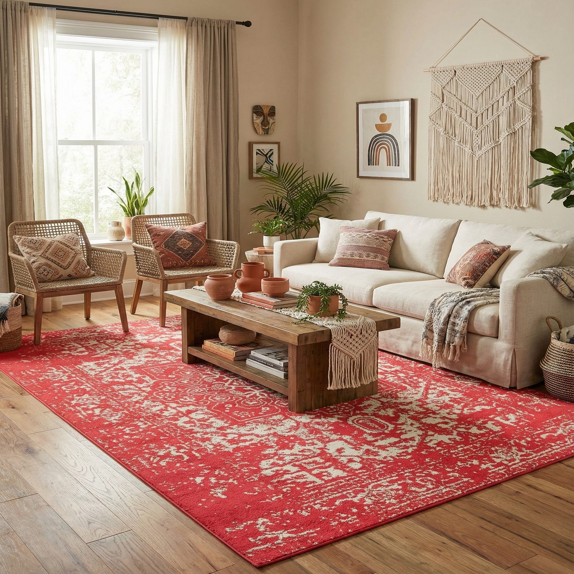 Primary color is Pink. Colors in this rug include: Pink, Ivory.
