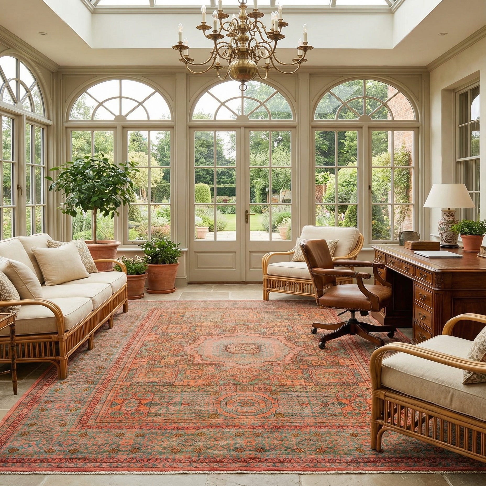Primary color is Pink. Colors in this rug include: Pink, Pink, Grey, Light Blue, Light Brown.