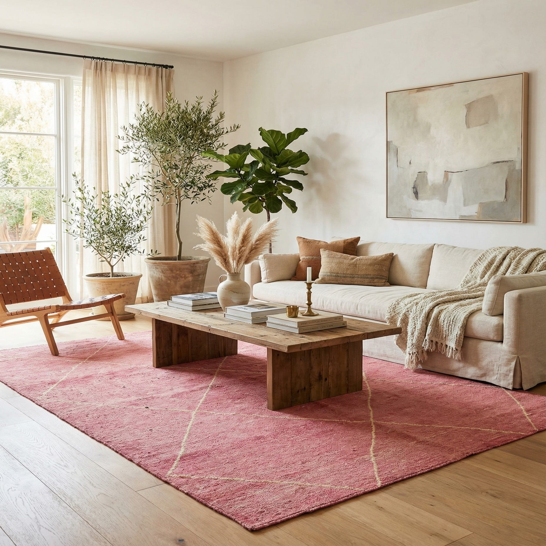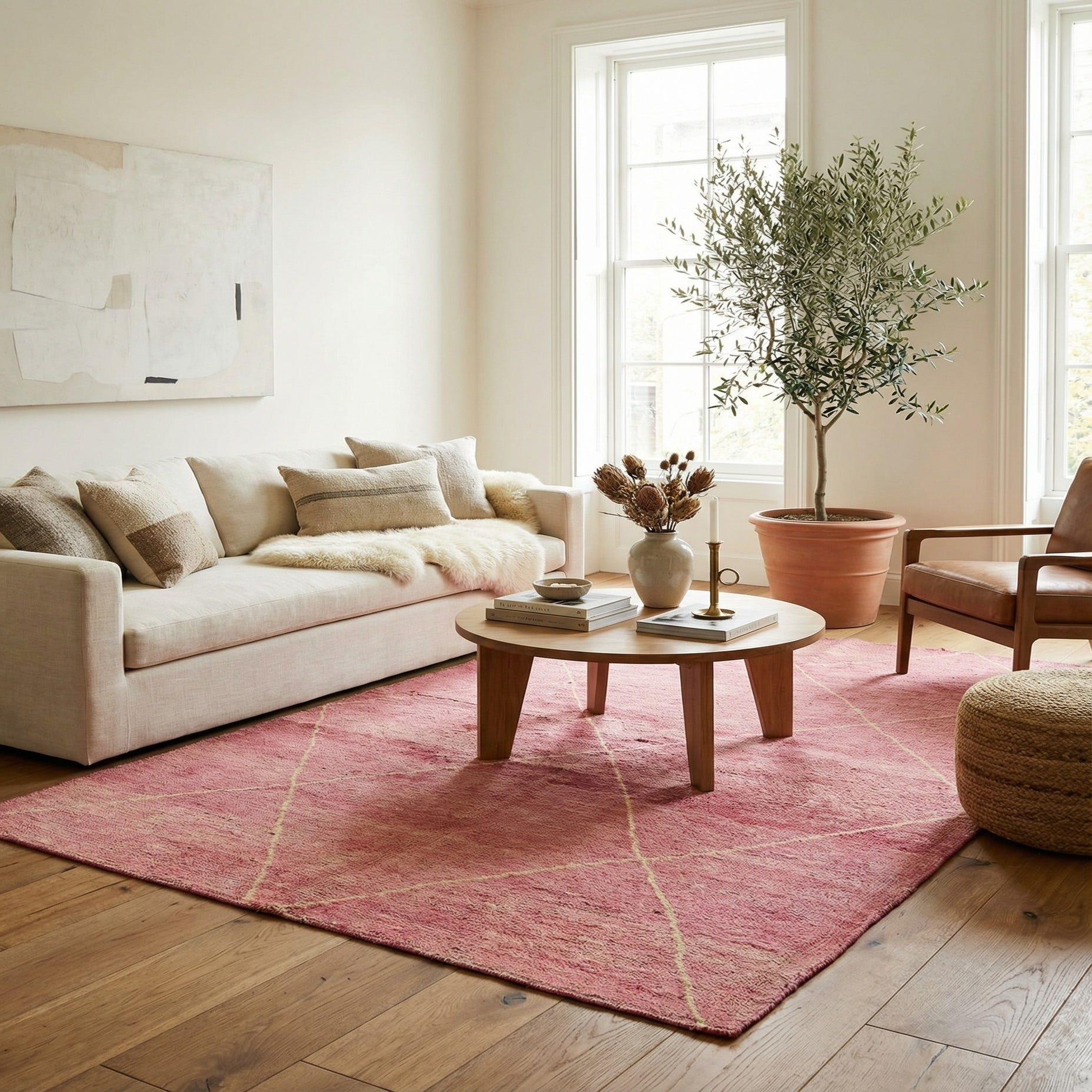 Primary color is Pink. Colors in this rug include: Pink, Cream.