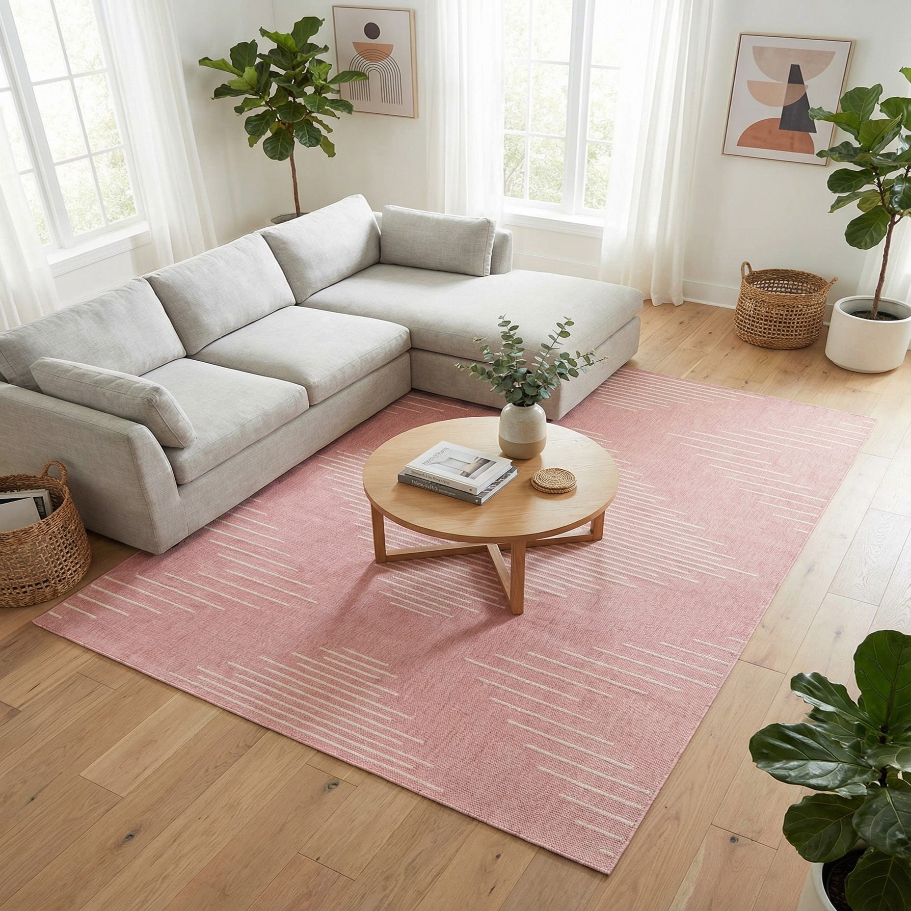 Primary color is Pink. Colors in this rug include: Pink, Ivory.