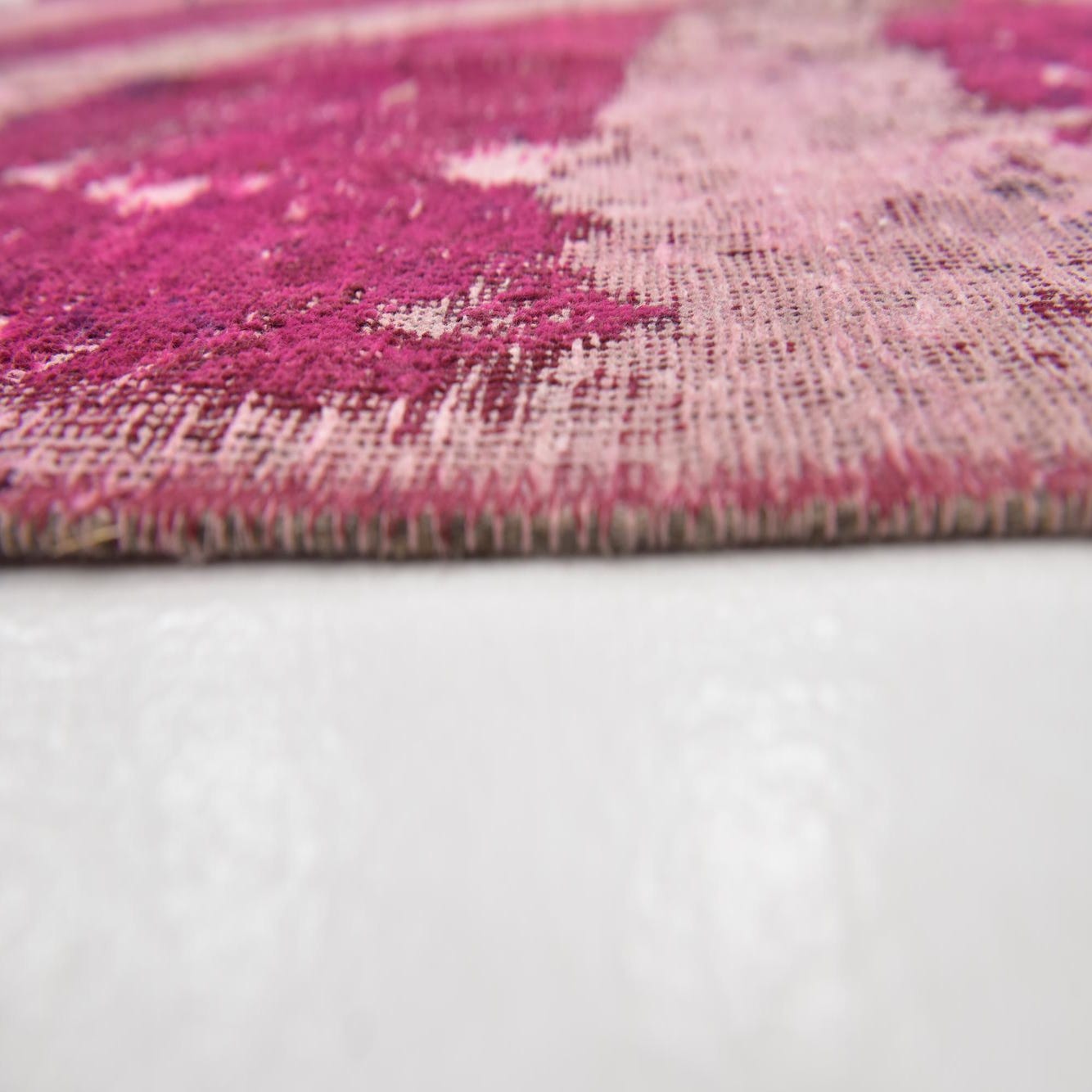 Primary color is Pink. Colors in this rug include: Pink, Burgundy, Red, Navy Blue, Violet.