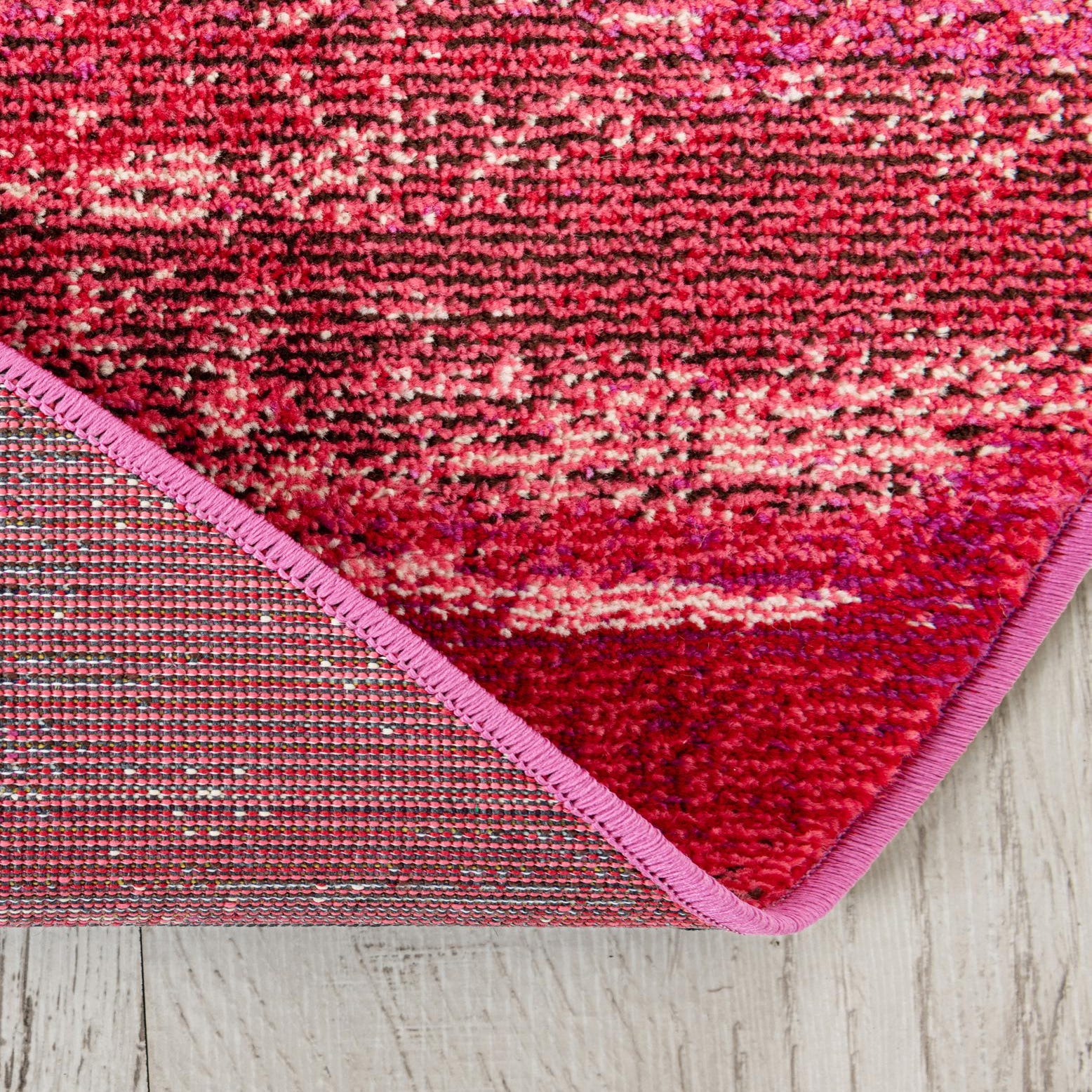 Primary color is Pink. Colors in this rug include: Pink, Brown, Burgundy, Ivory, Puce, Purple, Red, Salmon.