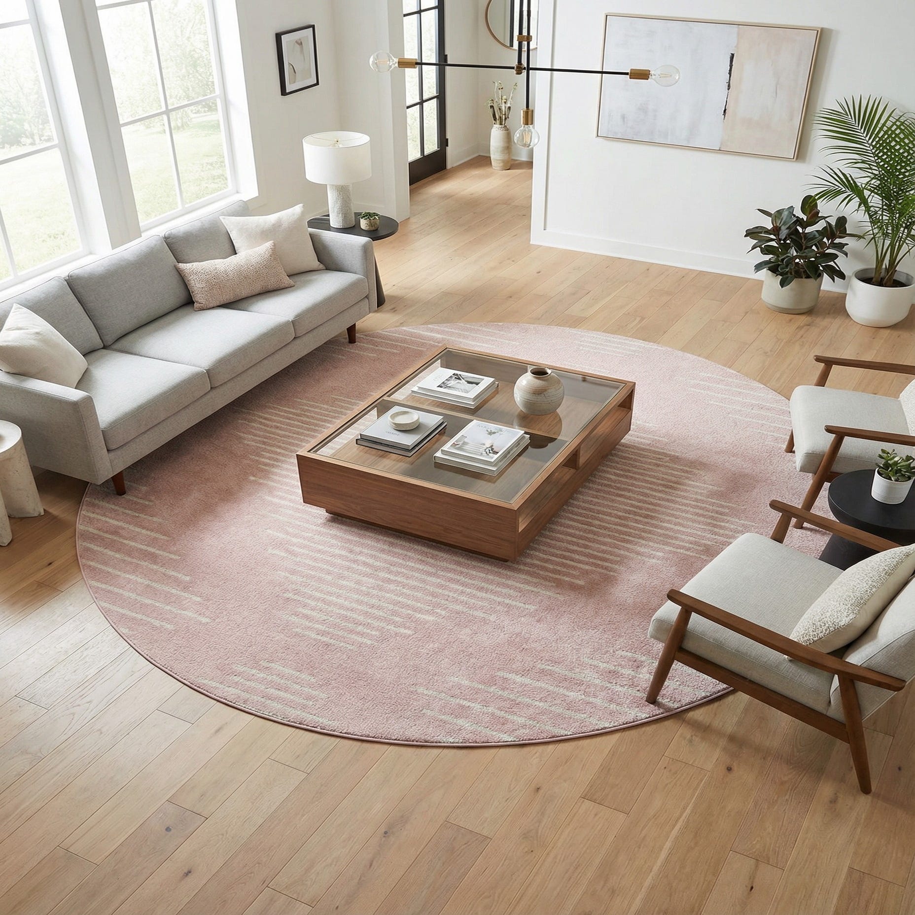 Primary color is Pink. Colors in this rug include: Pink, Ivory.