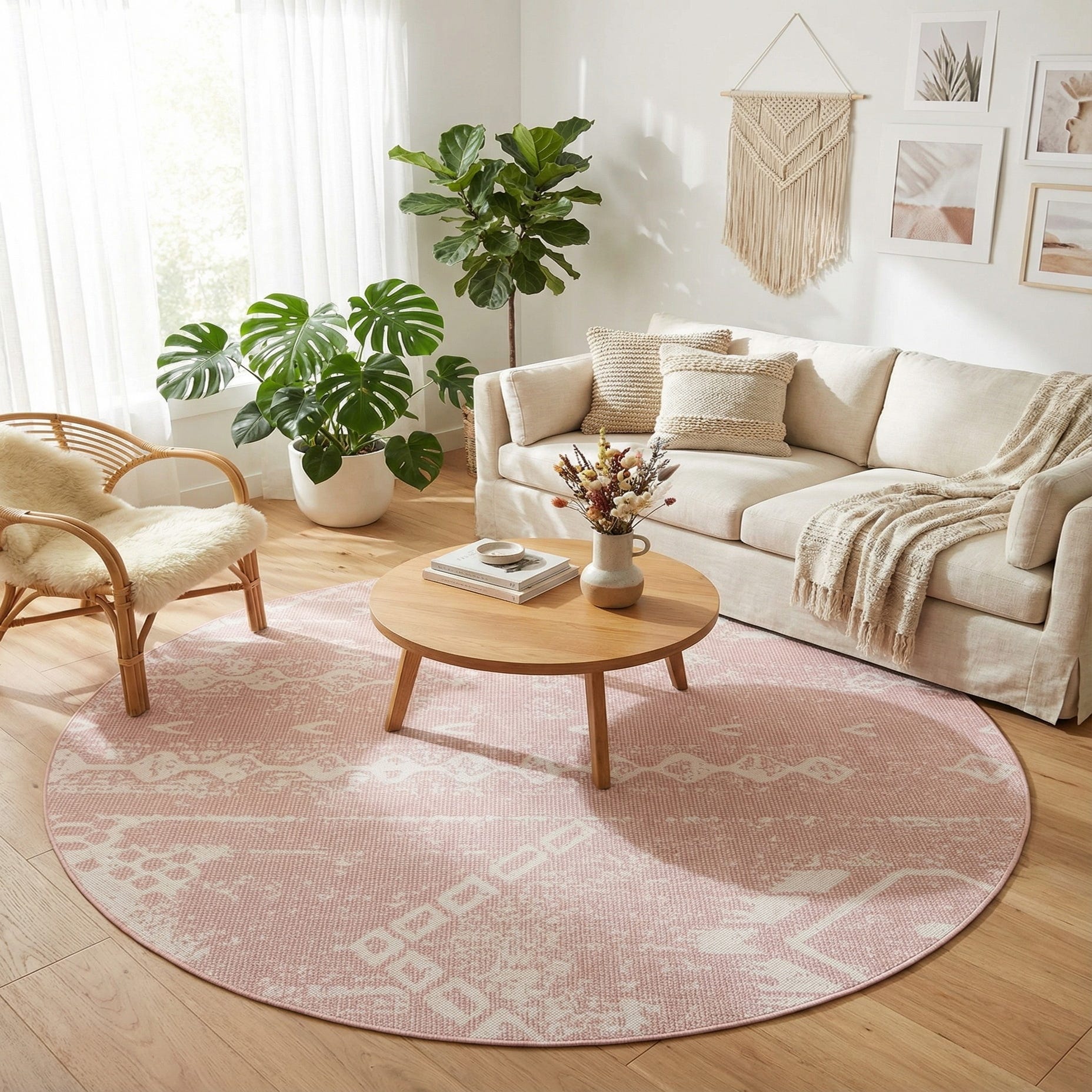 Primary image 7' 10 x 7' 10  Washable Bohemian Indoor / Outdoor Round Rug