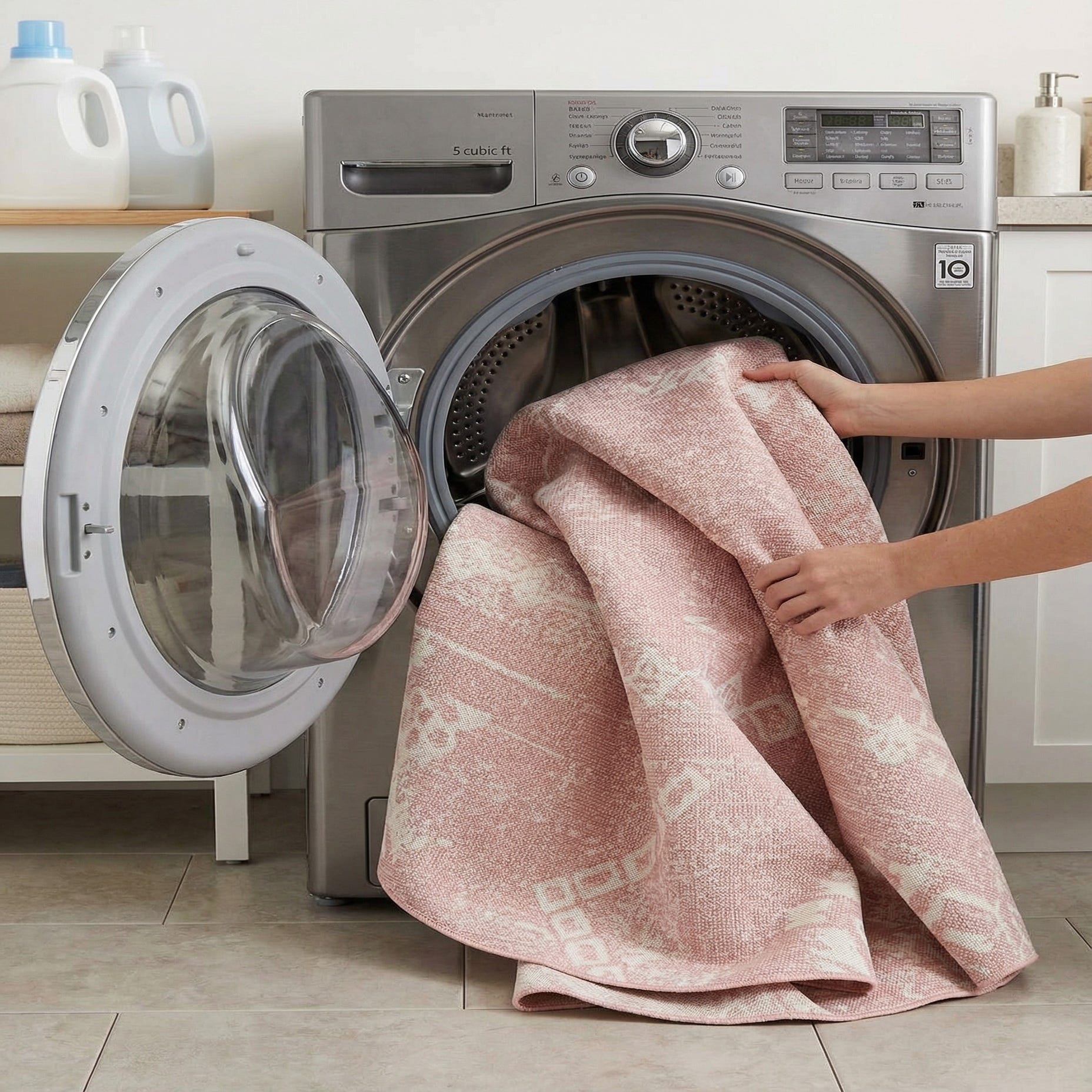 Primary color is Pink. Colors in this rug include: Pink, Ivory.