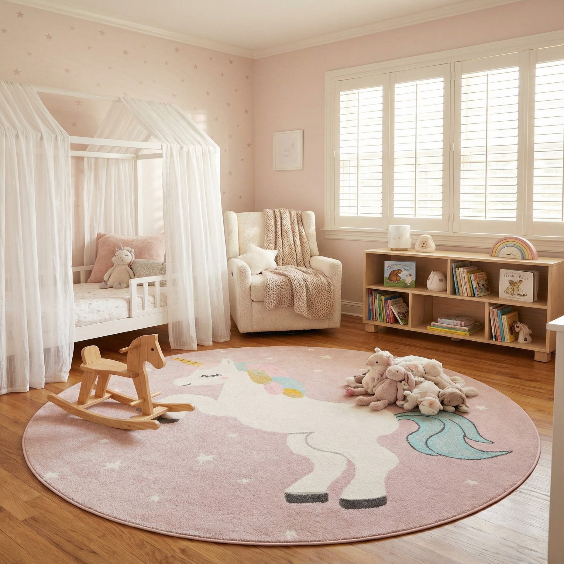 7' 10 x 7' 10 Unicorn Whimsy Kids Round Rug