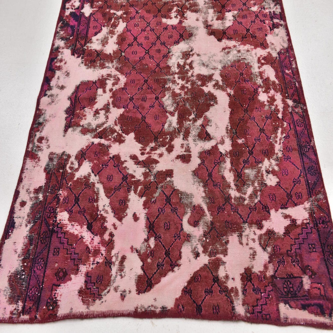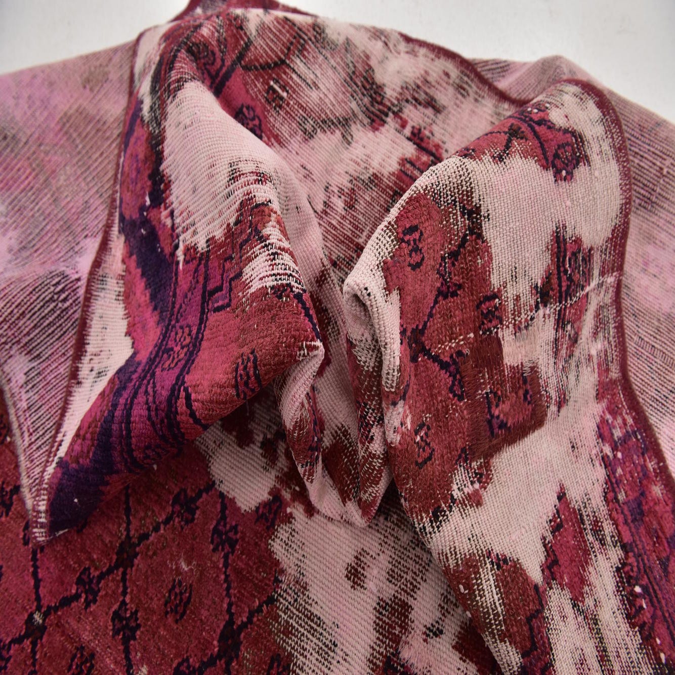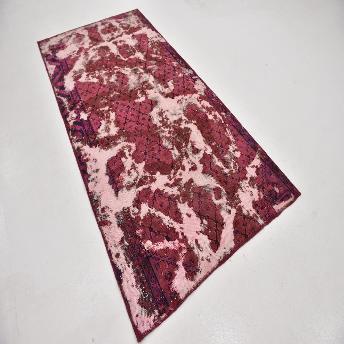 This Persian Ultra Vintage rug is an antique Persian Rug that has been washed, over-dyed, and then shaved down to a low pile. Look at the detail pictures to fully appreciate the uniqueness of this piece.