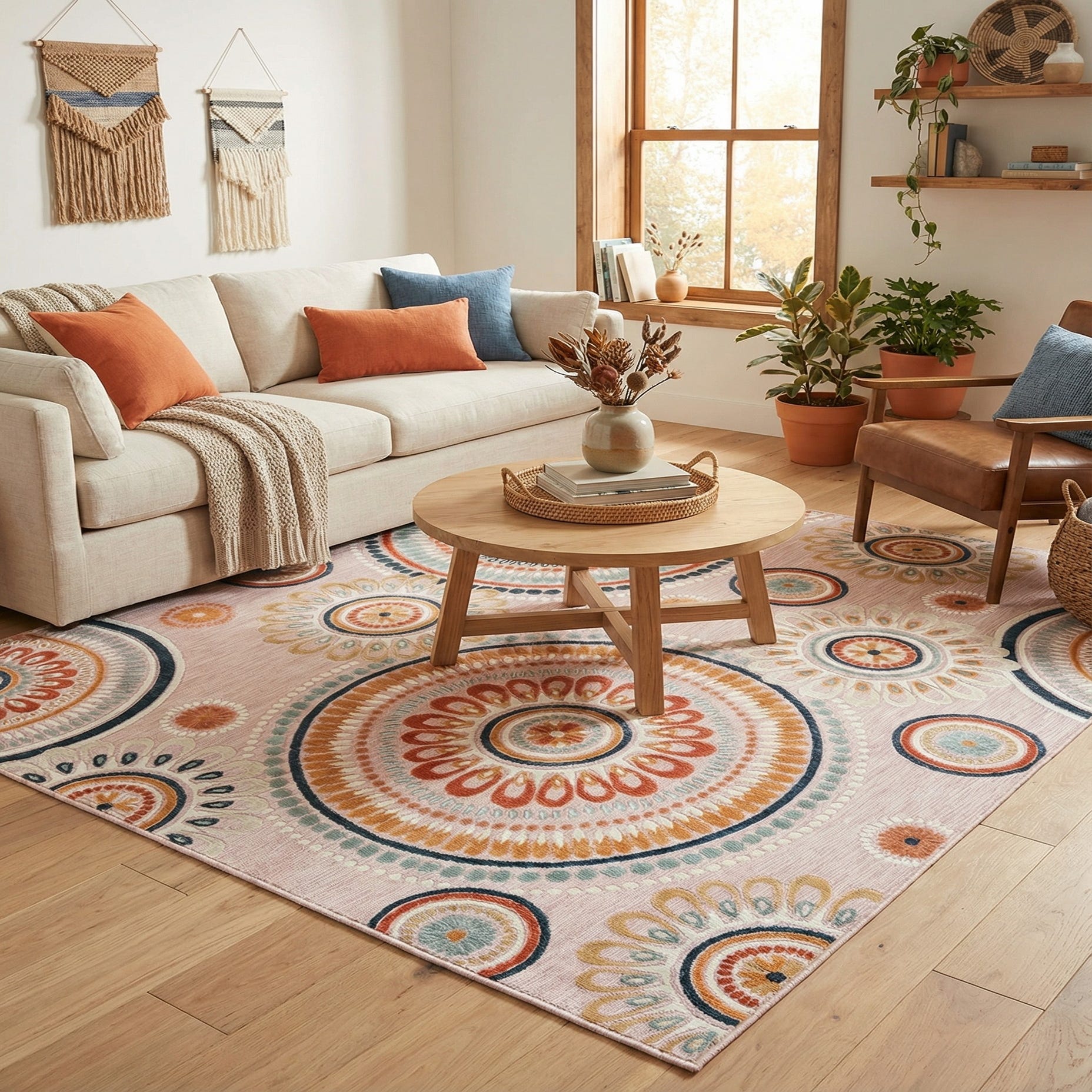 Primary image 8' 2 x 8' 2  Washable Botanical Indoor / Outdoor Square Rug
