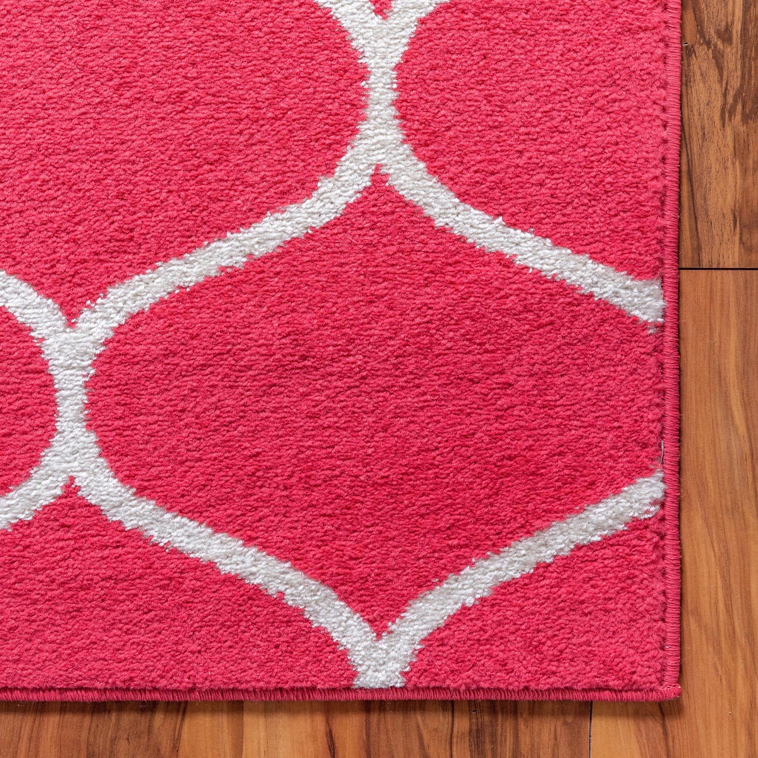 Primary color is Pink. Colors in this rug include: Pink, Ivory.
