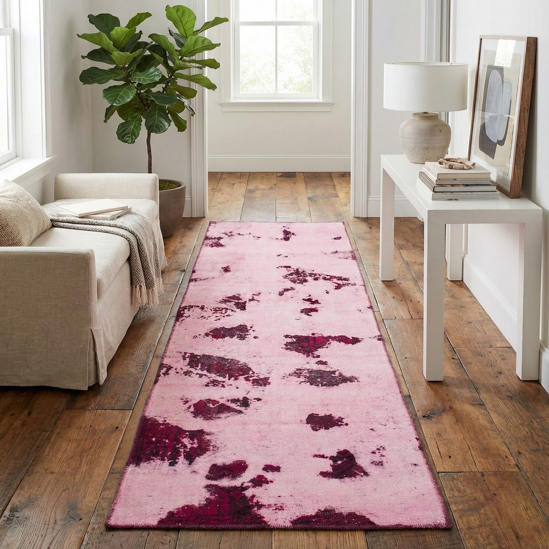 Primary color is Pink. Colors in this rug include: Pink, Maroon, Burgundy.