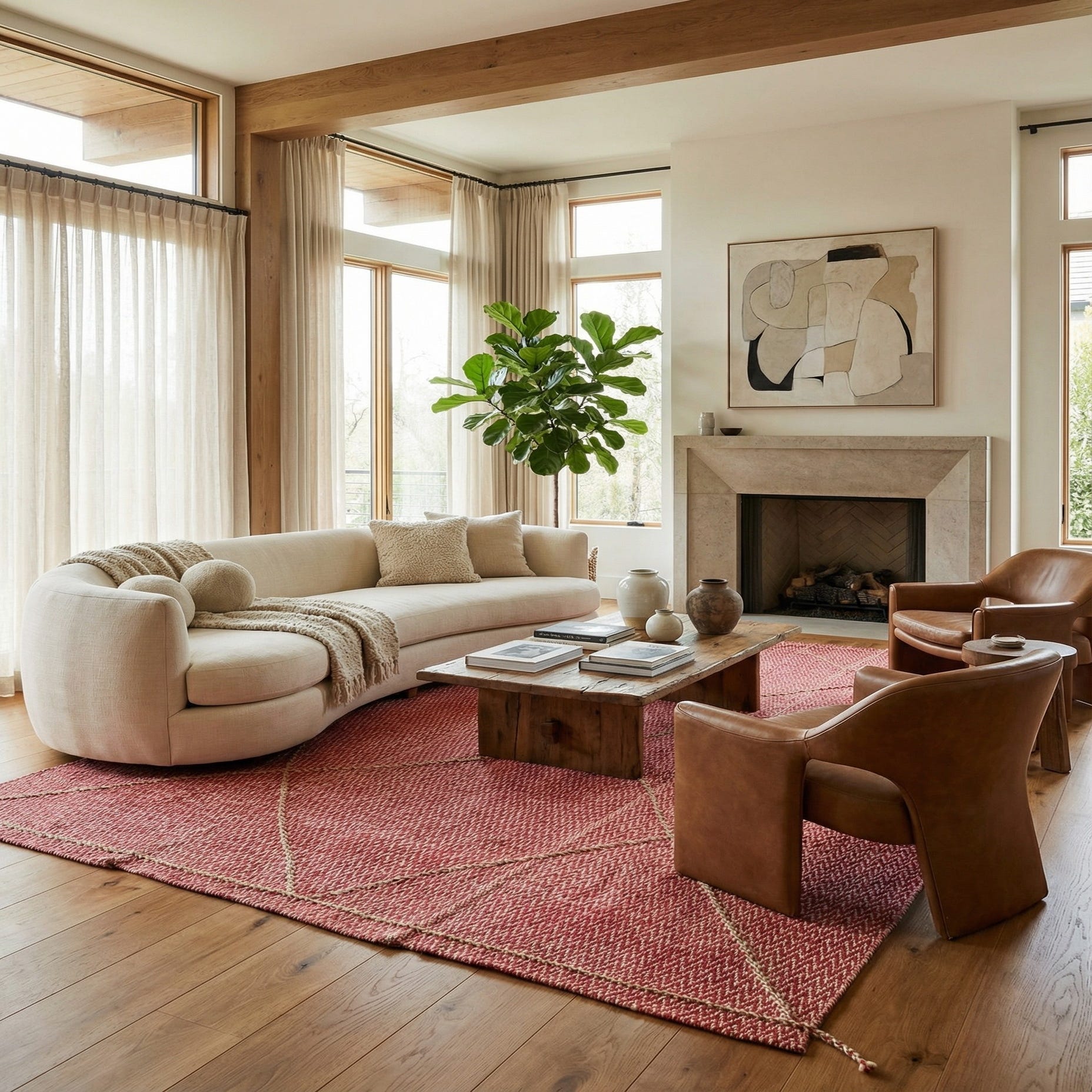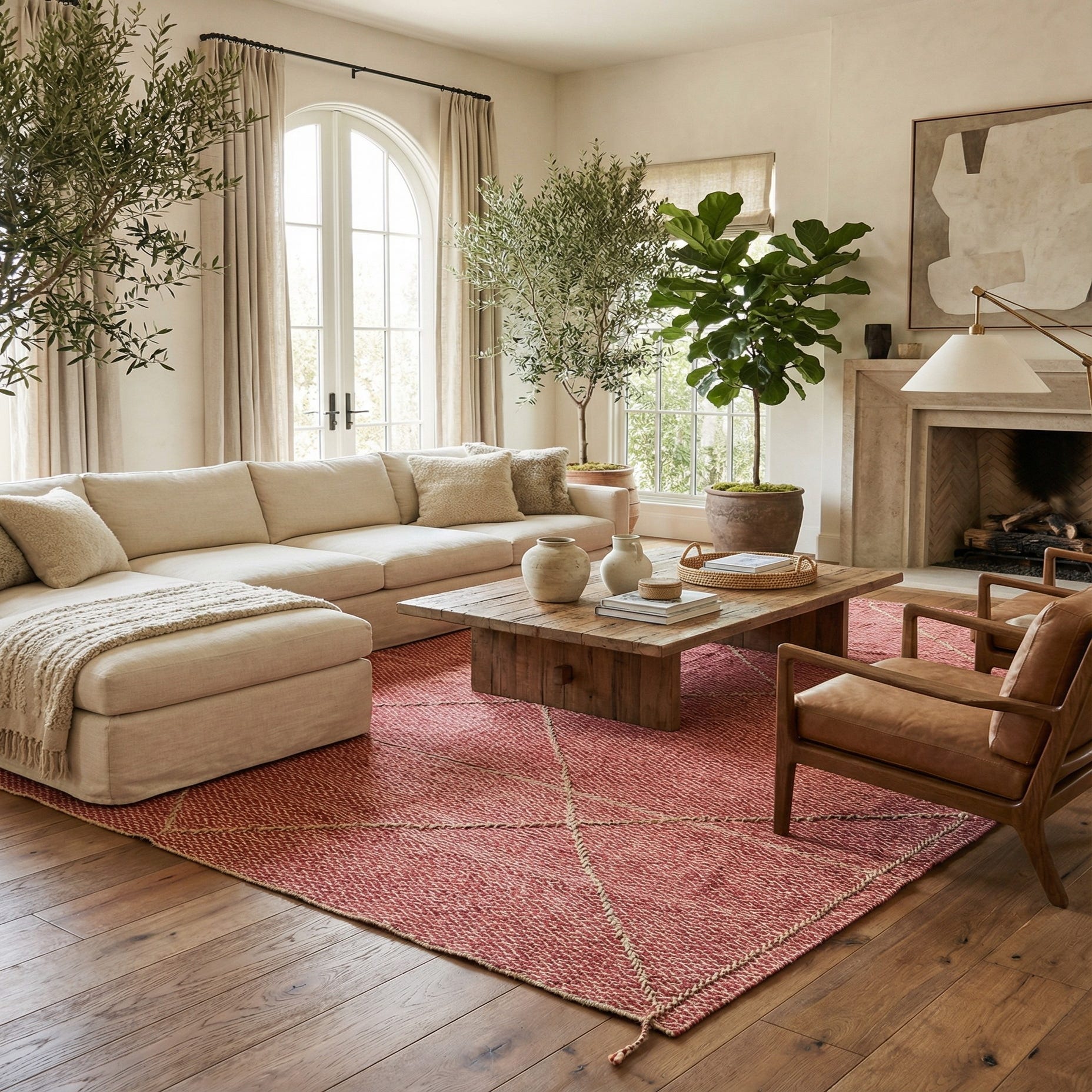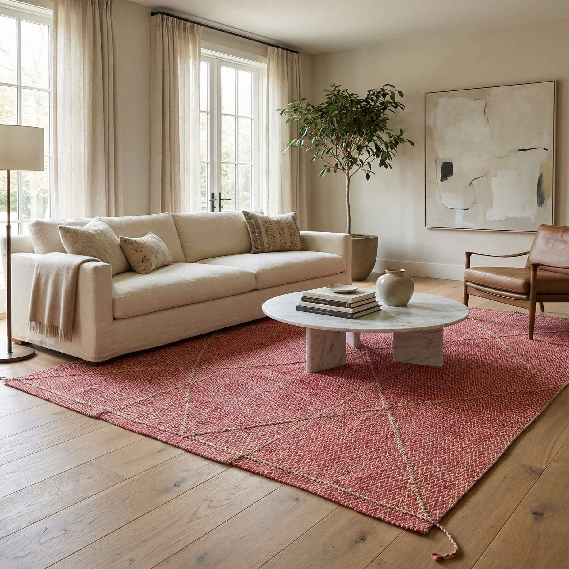 Primary color is Pink. Colors in this rug include: Pink, Ivory.