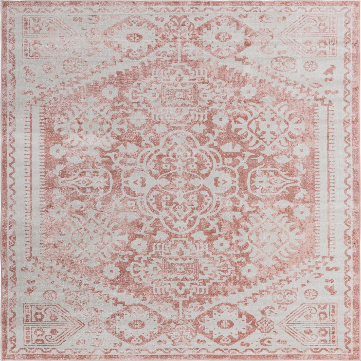 Primary color is Pink. Colors in this rug include: Pink, Ivory.