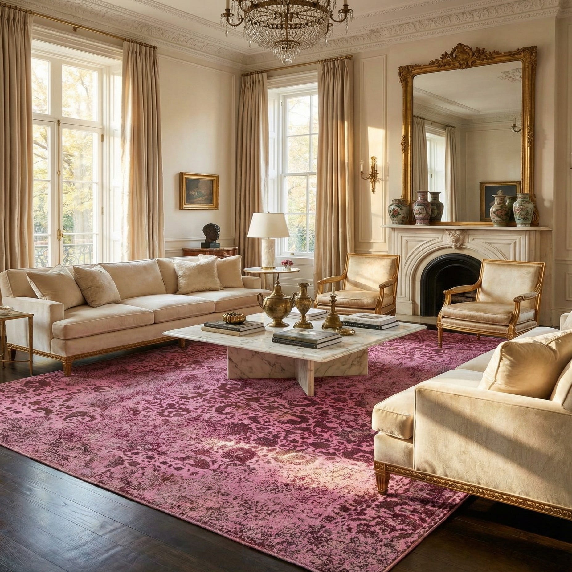 Primary color is pink. Colors in this rug include: pink, Pink.