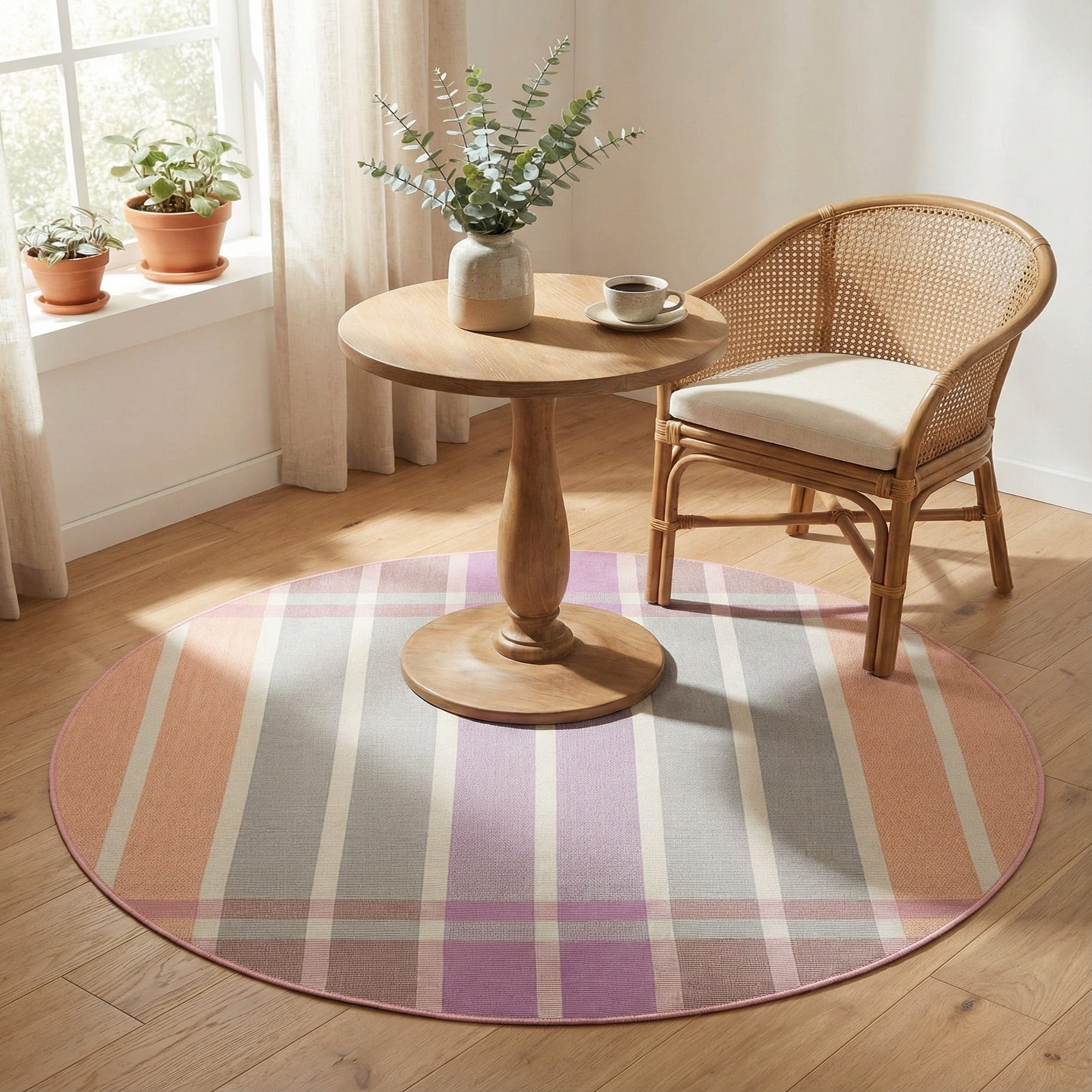 Primary image 4' x 4'  Washable Striped Indoor / Outdoor Round Rug